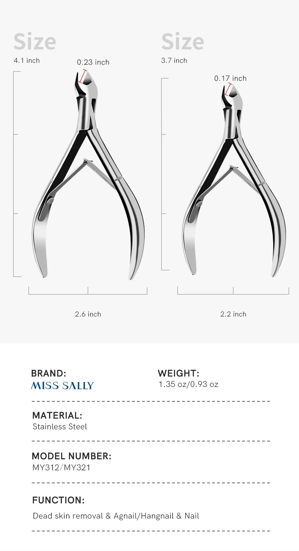 Ножницы для кутикулы Miss SallyКусачки для кутикулыПрофессиональный резак для кутикулы, триммер из нержавеющей стали, машинка для удаления кутикулы, педикюр, Маникюрный Инструмент для ногтей