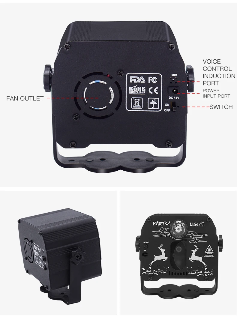 Зеленый красный светодиодный лазерный светильник, дискотечный светильник s dj, звуковой вечерние светильник, вращающийся лазерный проектор Noel, светодиодная сценическая мини-вспышка для дня рождения, семья KTV, украшение дома