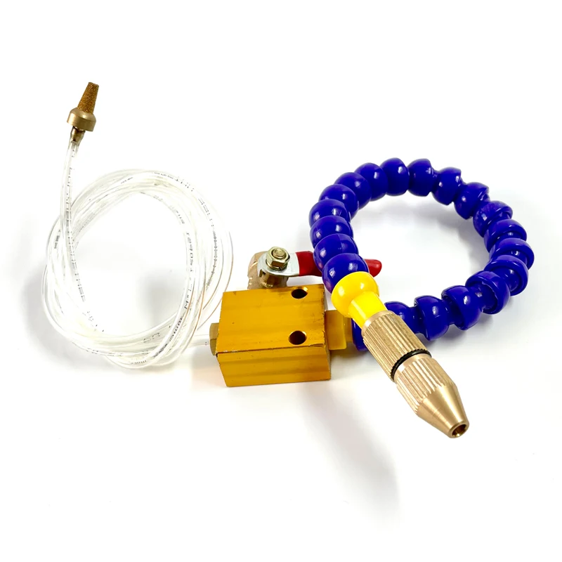 Спецификация: Материал: пластик, металл и латунь Размер: 36 см (L), шланг около 1 м. Подходит для воздушной трубы 8 мм Охлаждающий камень/металл/керамическая плитка гравировальная машина. Для токарного фрезерного станка с ЧПУ.