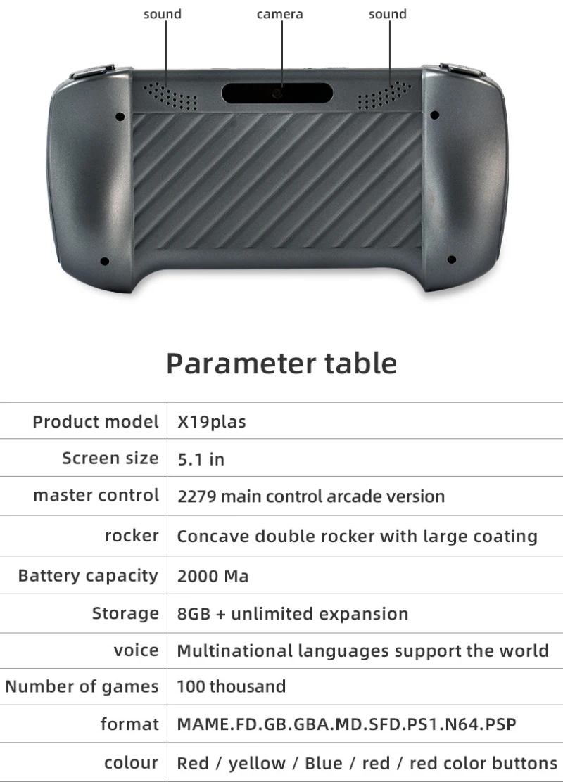 5. Классический игровой консоли: высокой четкости 5,1-дюймовый большой экран, двойной дизайн джойстика, встроенный 10000 футболки с принтами на тему классических игр, поддержка GBA / SF/ро/GB / FC аркадных игр. Максимальная поддержка большой памяти TF 128 ГБ, может быть в TF скачать игру с соответствующим форматом на карте.