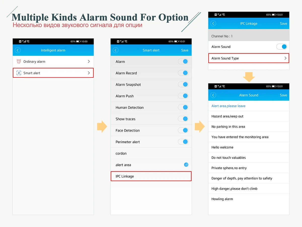 Камера сделает сигнал тревоги звуковыми сигналами, сообщения будут вытеснены в приложение вашего телефона.