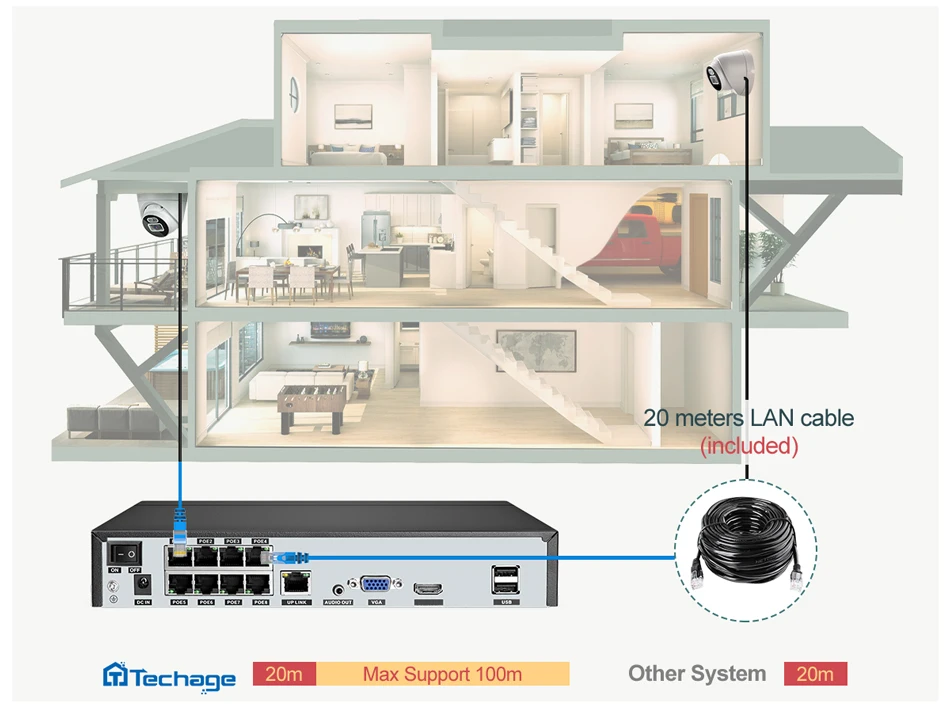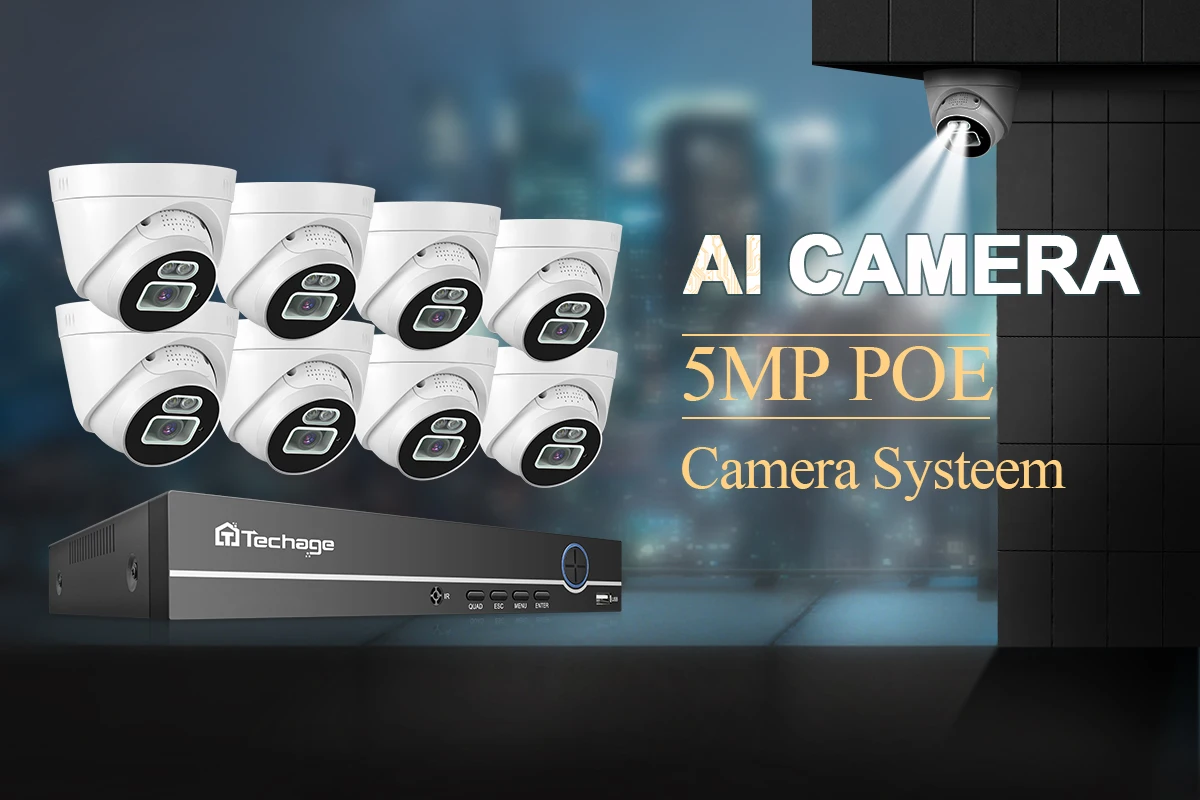 1. Наша новая система камеры POE 5 Мп. 8-канальный NVR дизайн, поддержка подключения до 8 шт камер, вы можете купить Techage ip-камеры с питанием по POE для расширения вашей системы видеонаблюдения.
