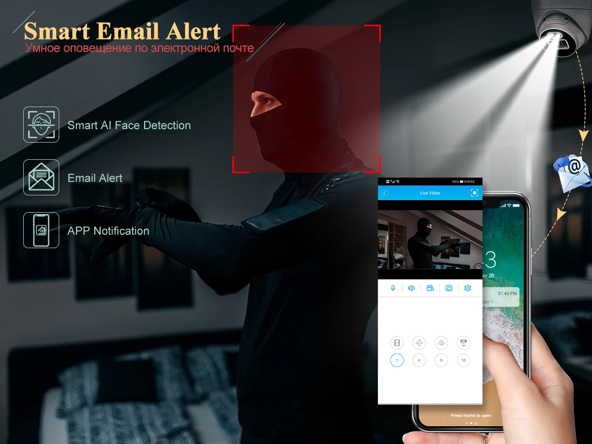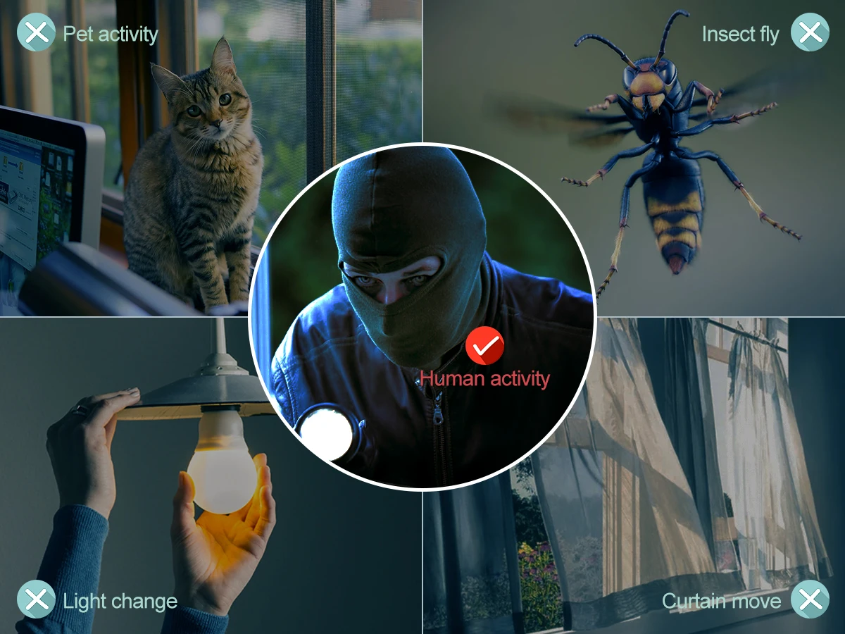 Только когда кто-то пройдет зону сигнализации, камера отправит сигнал тревоги, повысит точность сигнала тревоги.