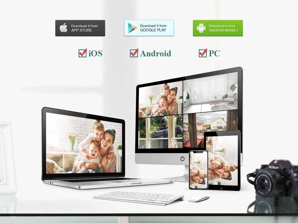 Поддержка доступа к устройствам IOS и Android. Сканируйте qr-код для входа в систему. Загрузите бесплатное приложение в Apple App Store / Google Play.