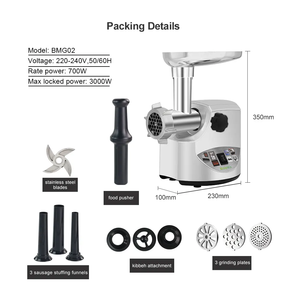 Быстрая Шлифовка: Эта Мясорубка имеет пиковую мощность 3000 Вт (Номинальная мощность 700 Вт)