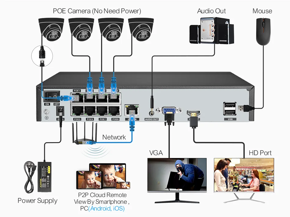 Экономьте деньги и удобно, POE NVR = NVR + POE коммутатор