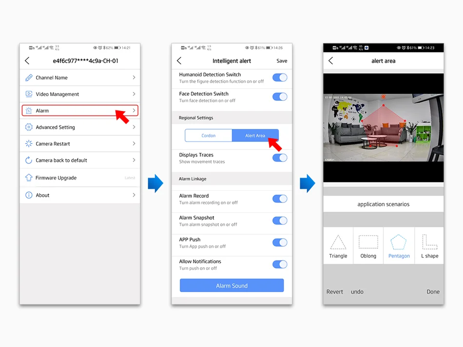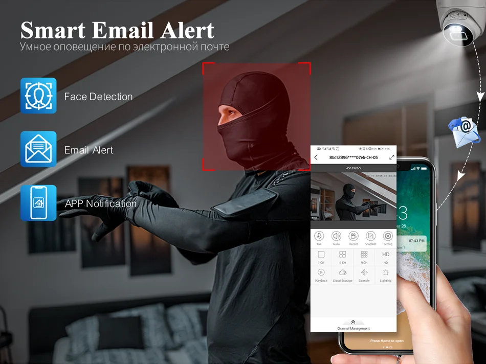 Когда кто-то врезается в область съемки, камера издаст сигнал тревоги, а сообщения будильника будут погружены в приложение для телефона