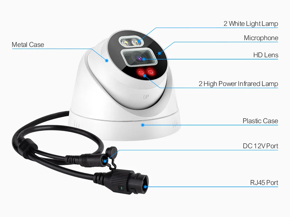 Когда 2 белых светодиода освещают, камера будет показывать красочное видение ночью.