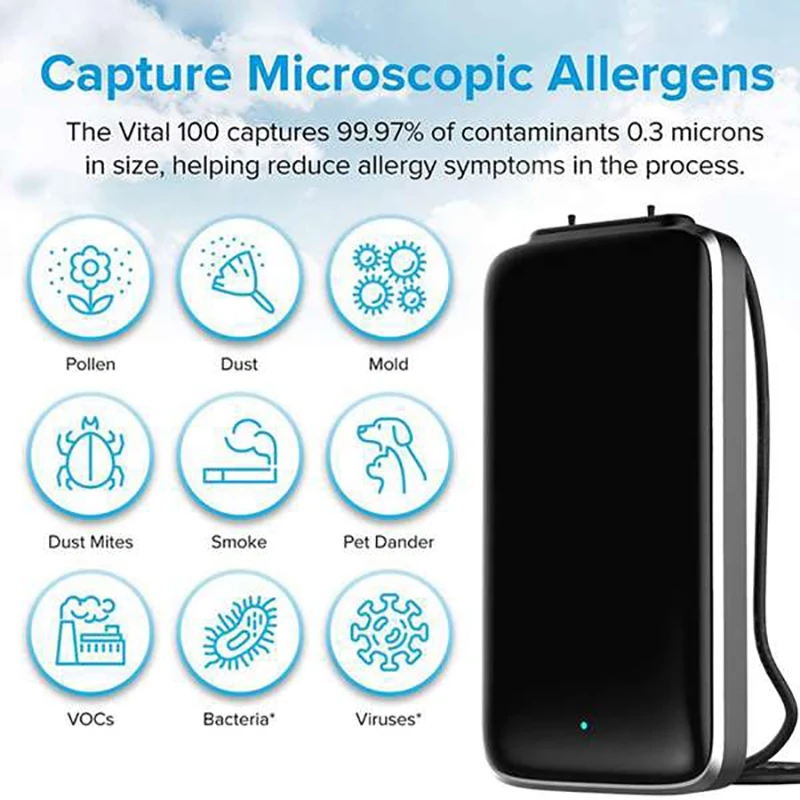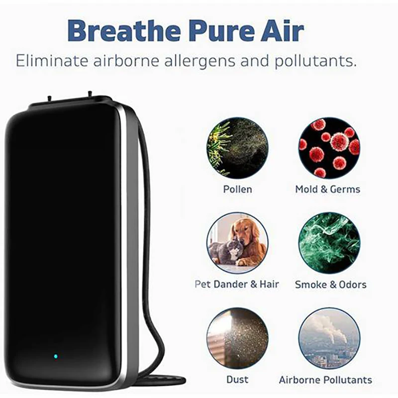 Технология очистки сверхвысокой концентрации: Этот персональный воздухоочиститель, пригодный для носки, использует новейшие технологии очистки воздуха и оснащен двумя отрицательными кислородными ионами, которые могут высвобождать до 100 миллионов отрицательных ионов кислорода с помощью импульсной технологии, фильтрация загрязнения больше, чем другие продукты на рынке. Позвольте вам дышать 1200% чистым воздухом и предоставить Вам безупречный Невидимый защитный чехол!