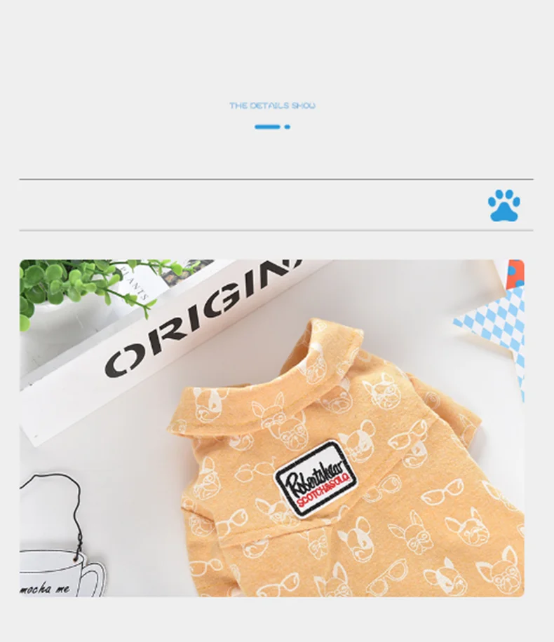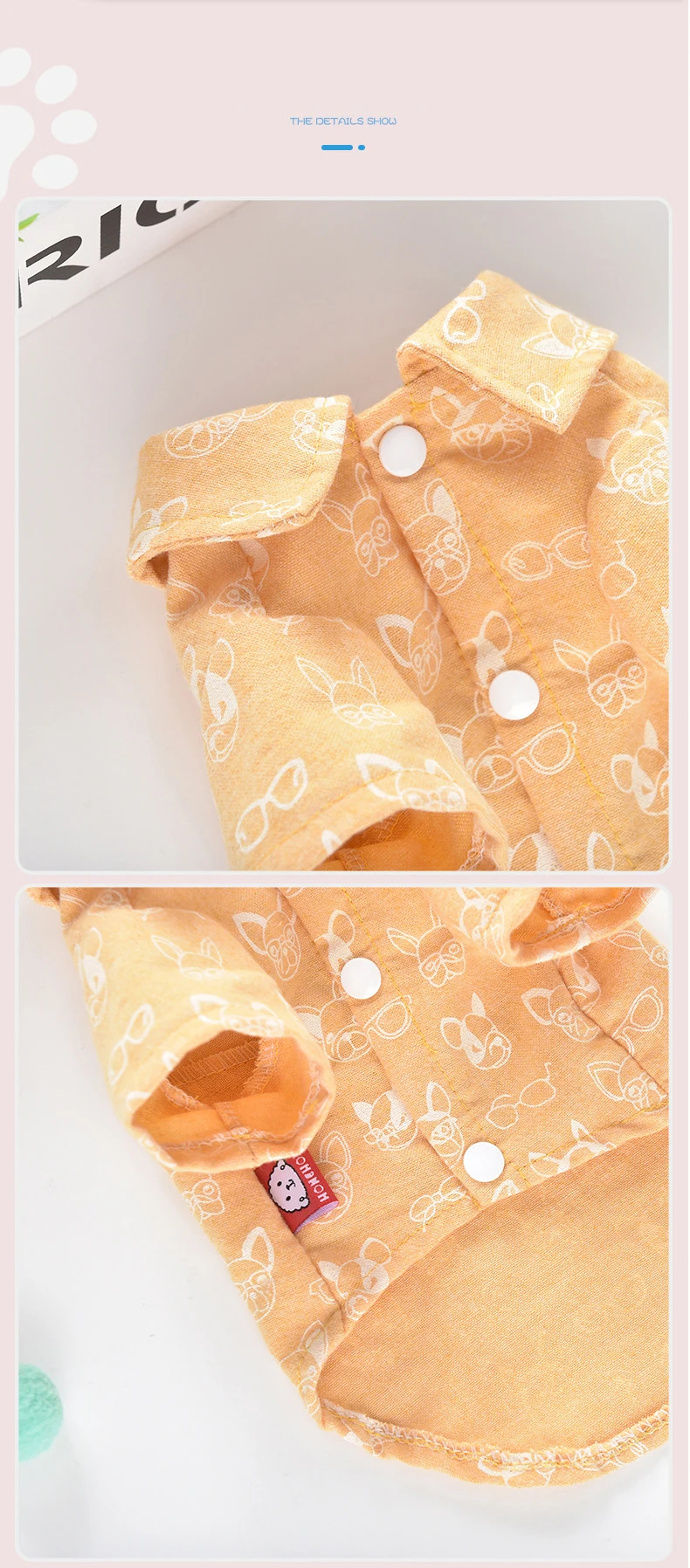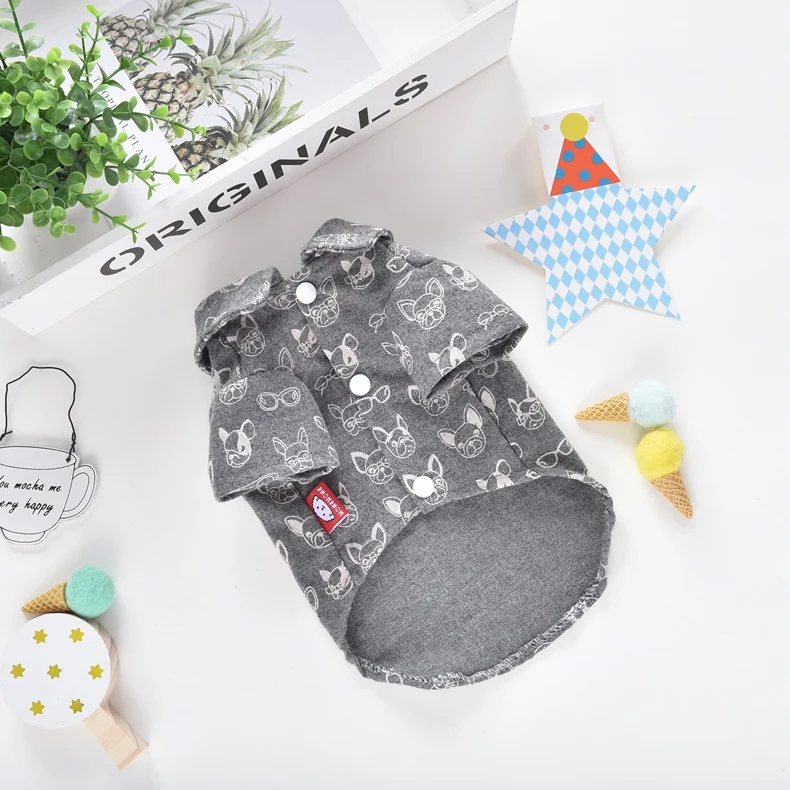 Летняя рубашка с принтом французского бульдога и терьера, одежда из хлопка, мягкий костюм для животных XS XXXL, Маленькие Средние костюмы для щенков и кошек, товары^_^ Цвет: желтый, серый