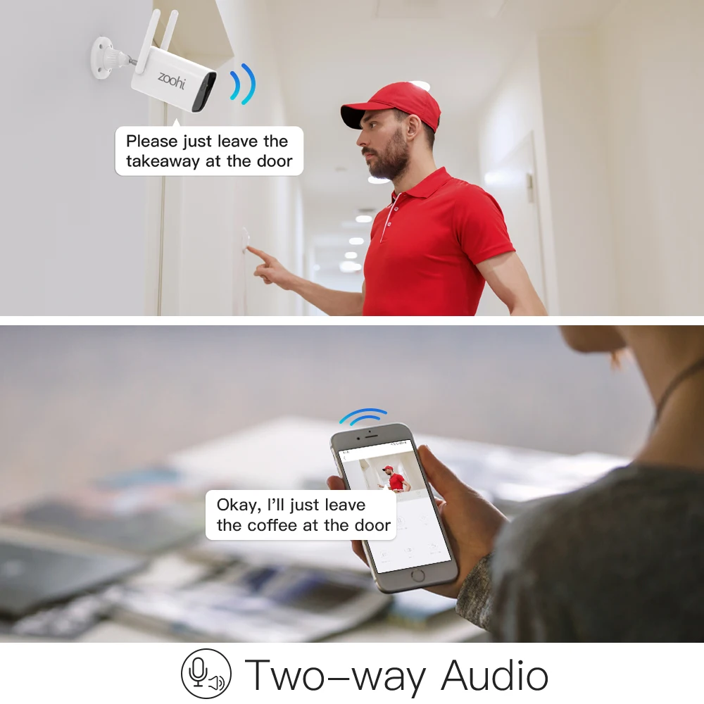 Беспроводная камера Zoohi имеет встроенный динамик и микрофон, поэтому вы можете услышать, что происходит дома,