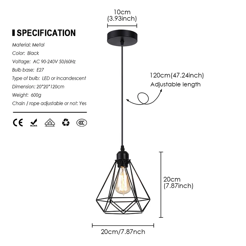 ✔Подвесной светильник в виде геометрической клетки с лампочками Эдисона идеально подходит для семейного помещения или торговой выставочной зоны в магазине. Обладает творческим штрихом с геометрической красотой. А теплое сияние освещения Эдисона создает уютную атмосферу в комнате.