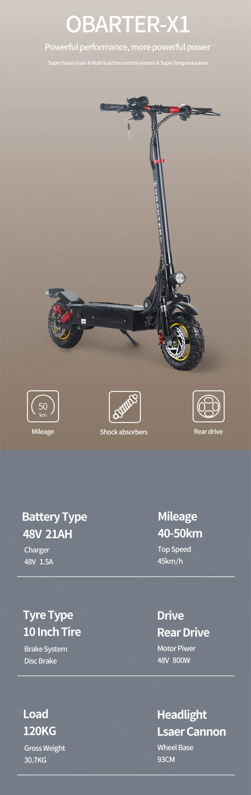 1. Максимальный диапазон и скорость отличаются из-за различного веса водителя, мастерства эксплуатации, состояния дороги и погоды. Наш тест был сделан водителем весом 55 кг на ровной и гладкой дороге.