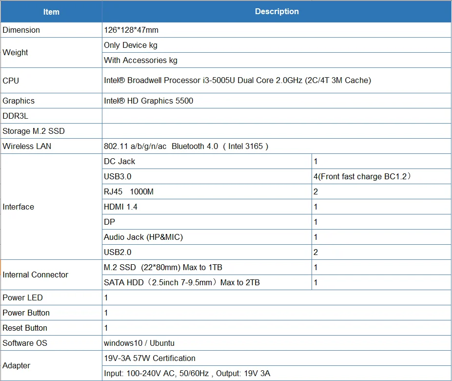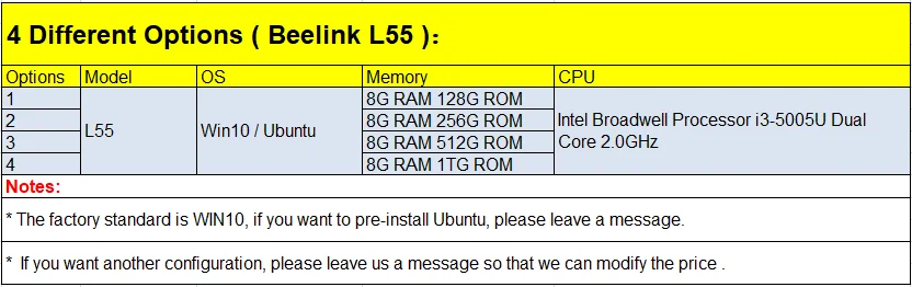 Мини-ПК Beelink Gemini L55 Intel i3-5005UWin10/Ubuntu 8G 128G/256G/512G/1TG
