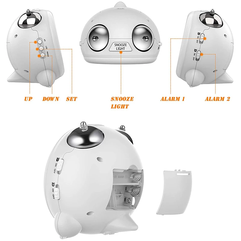 Питание от аккумулятора/нескольких дисплеев: 3 * AAA батареи (не входят в комплект). Будильник может отображать дату, неделю, год, время и non-ticking.Compact будильника для портативного использования.