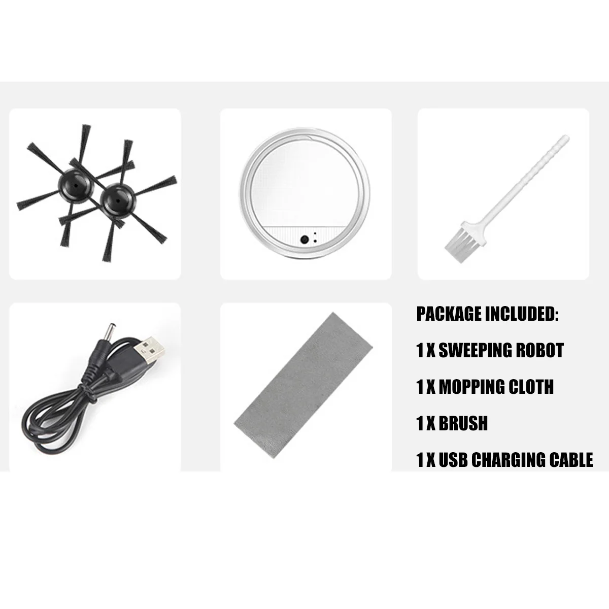 Функция: Запуск одной кнопкой, подметание, уборка, пылесос, автоматическая стерилизация, зарядка через USB, длительный срок службы батареи, универсальное вождение, автоматическое Предотвращение препятствий, защита от падения, низкий уровень шума интимный и без беспокойства, низкий повторение, высокий охват