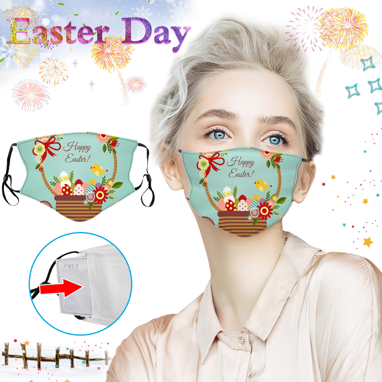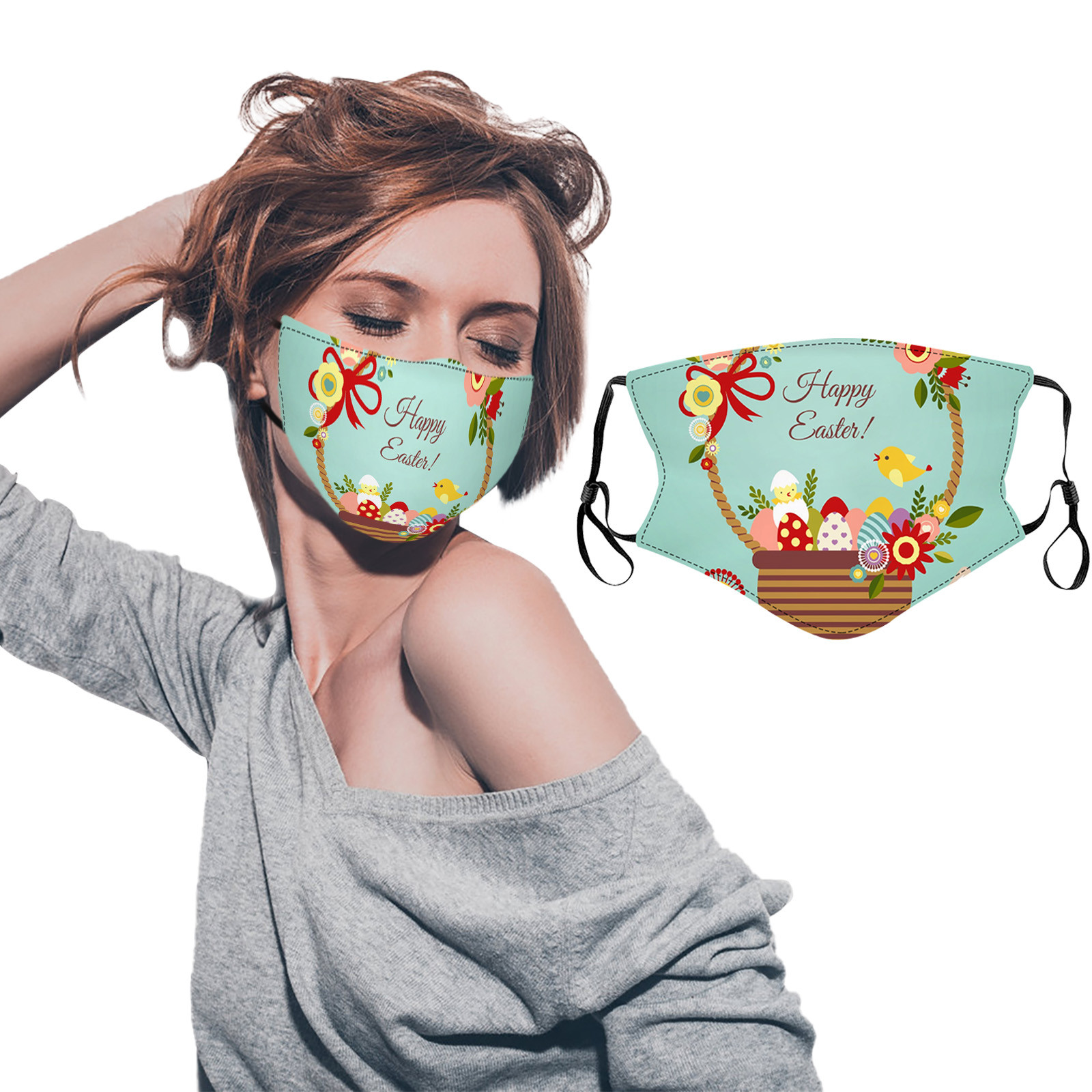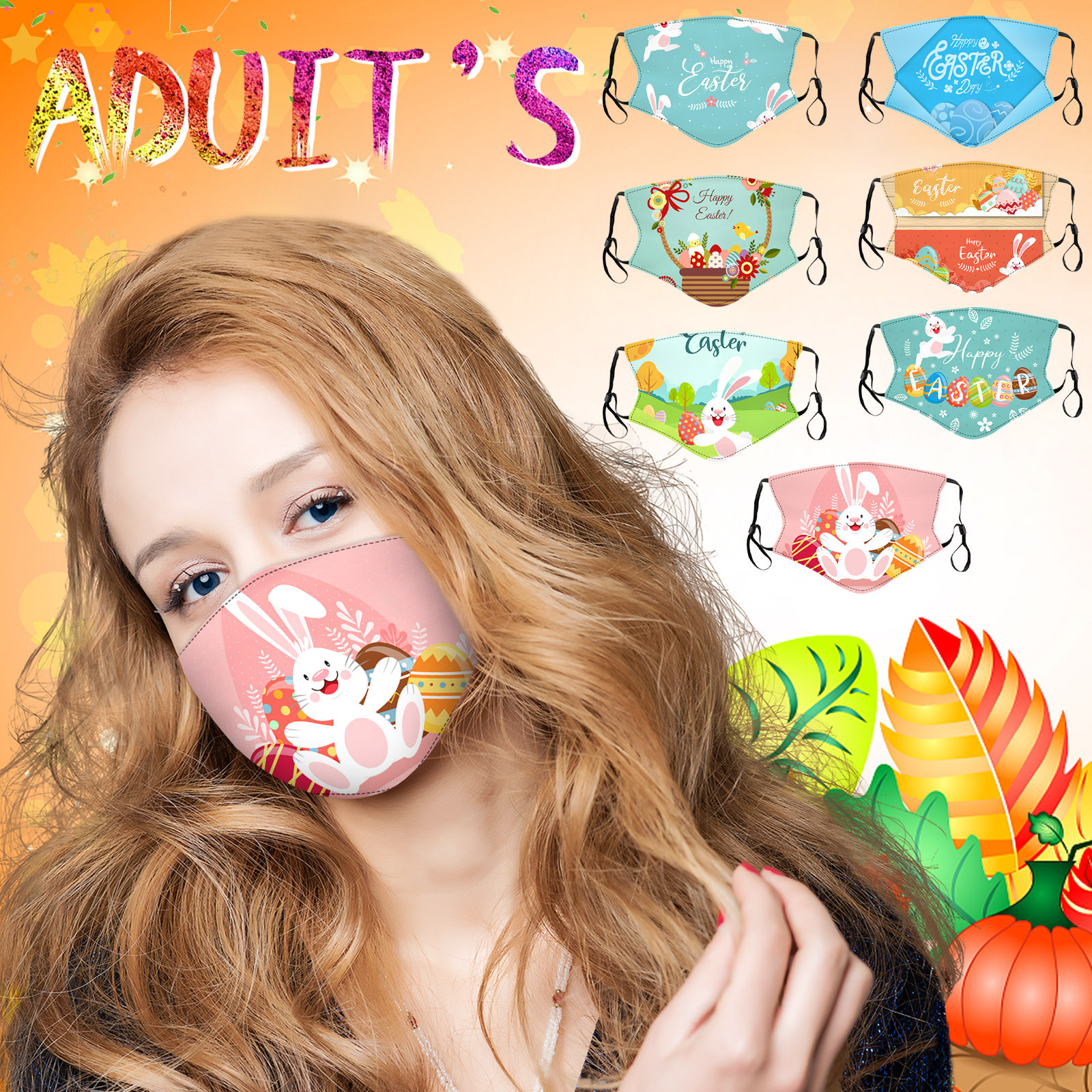 Пасхальная тема, модные моющиеся дышащие маски с цветочным принтом для взрослых