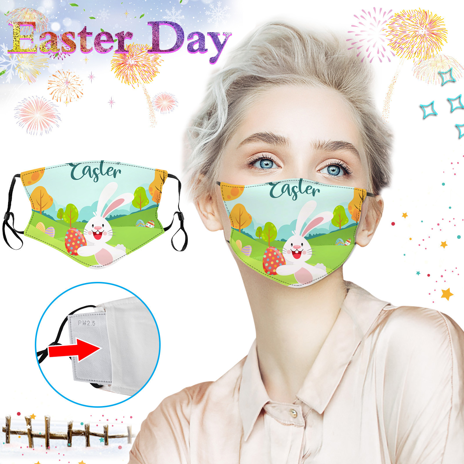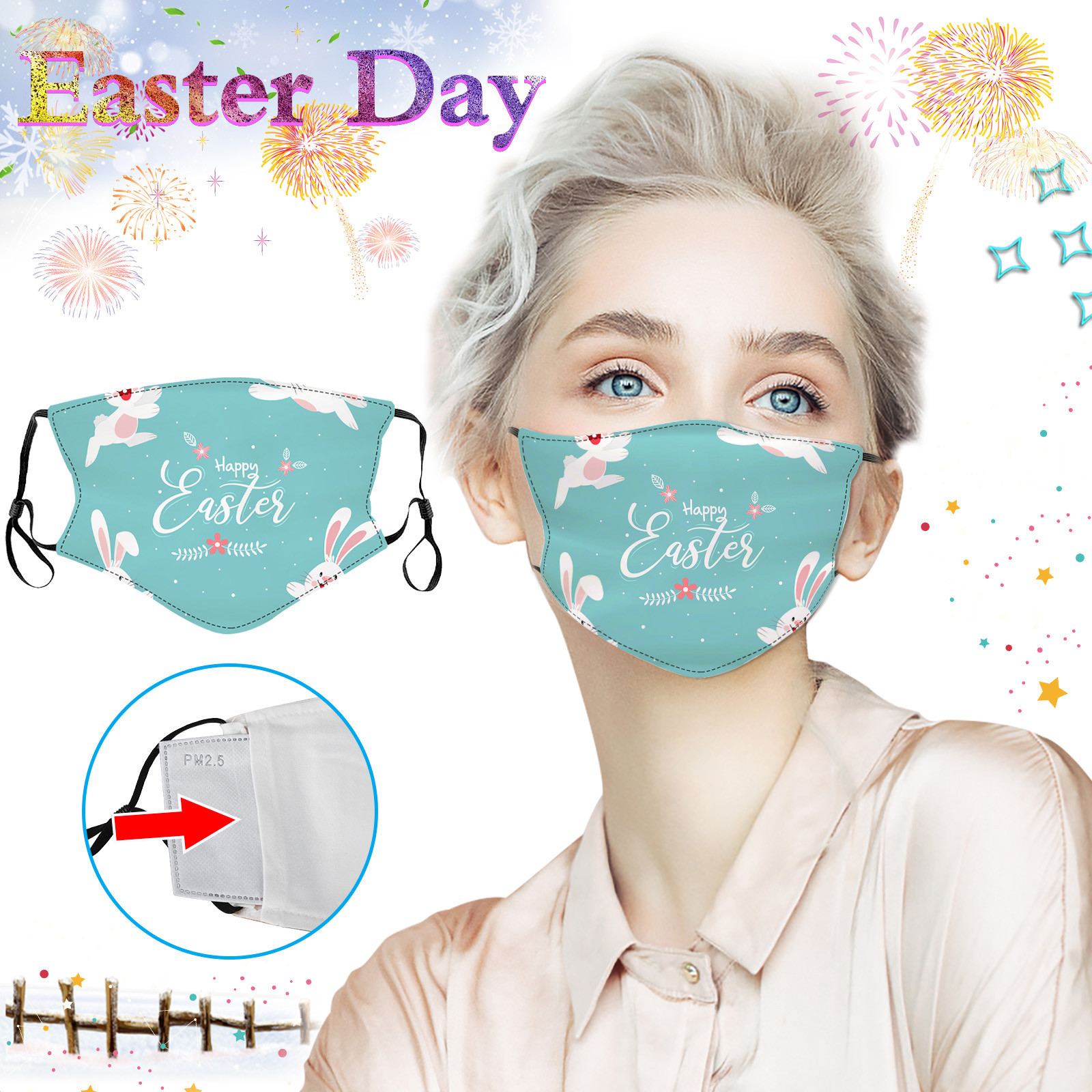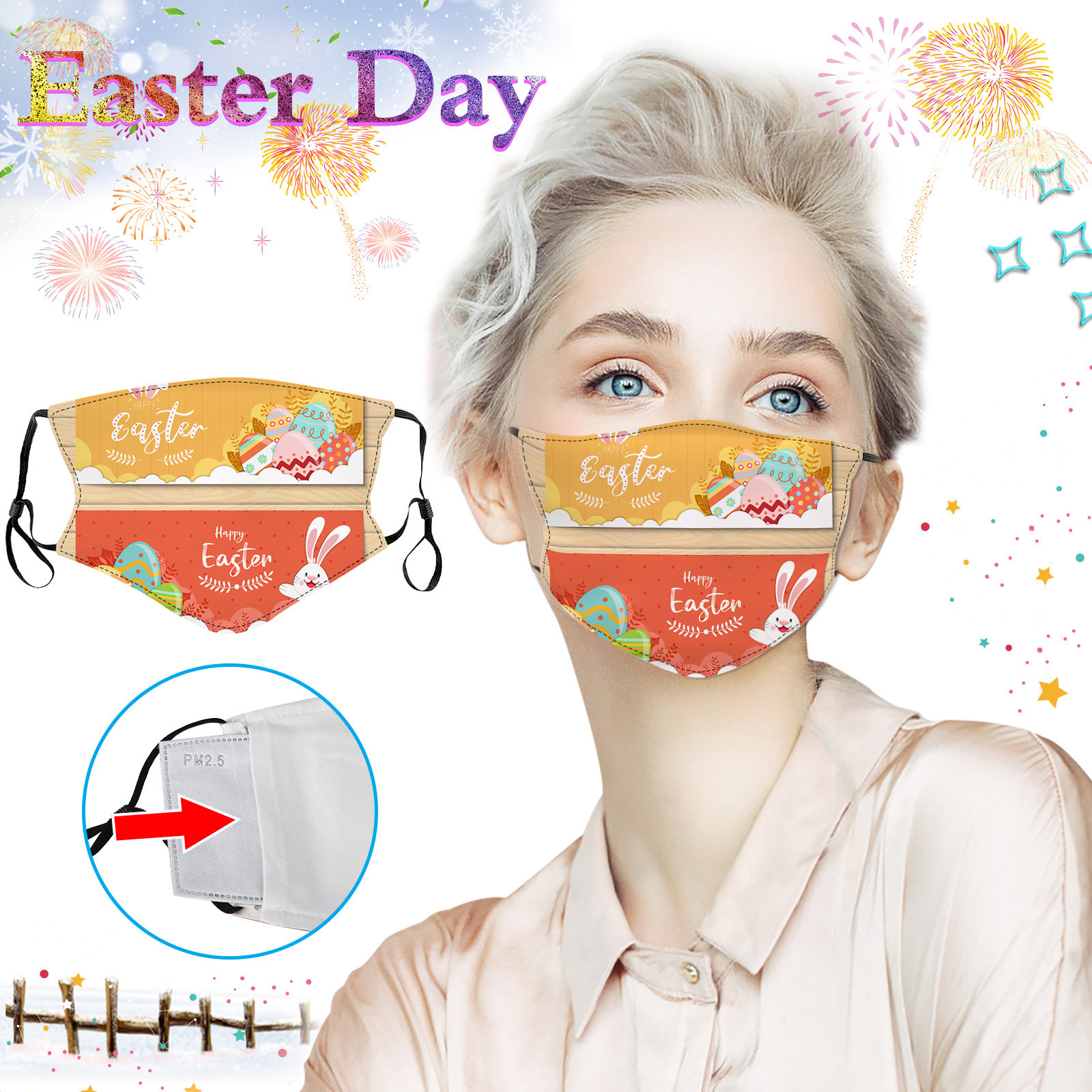 Пасхальная тема, модные моющиеся дышащие маски с цветочным принтом для взрослых