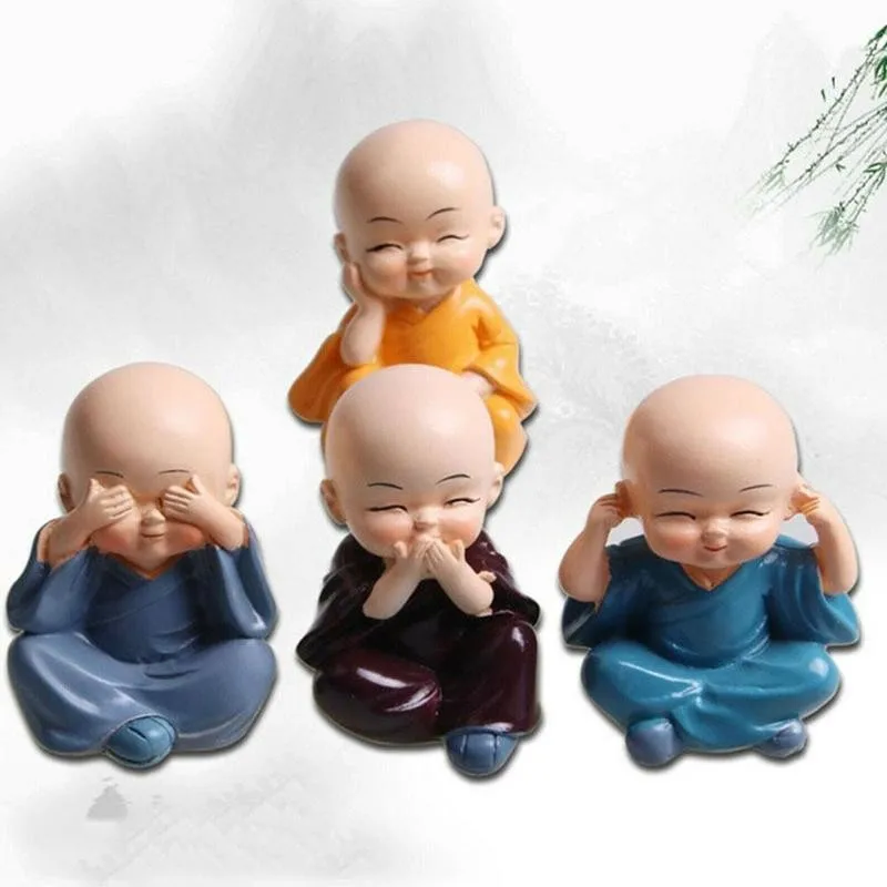4,71 долл. США Описание товара 4 шт./лот маленькая статуя Будды, креативные домашние декоративные украшения, миниатюры, монах, качающаяся голова, смоляная фигурка, милая кукла