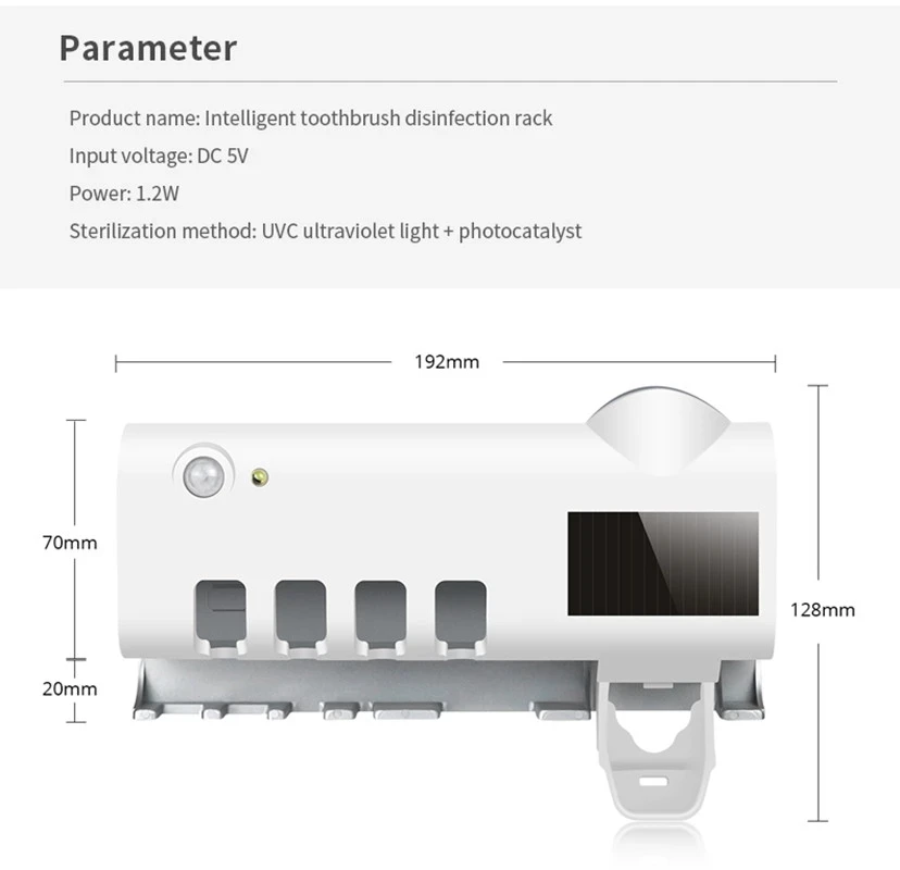 УФ-держатель для зубной пасты и для зубной щетки диспенсер Солнечная энергия Ванная комната Зубная щетка Коробка для хранения многофункциональный держатель для хранения USB зарядка