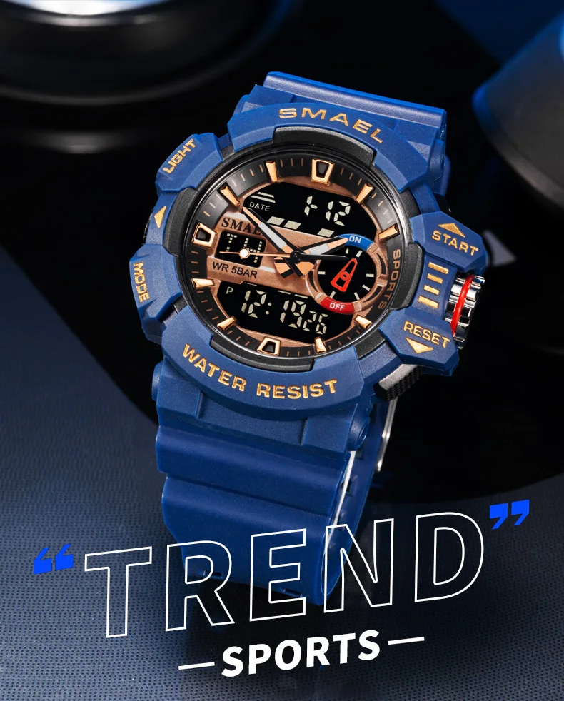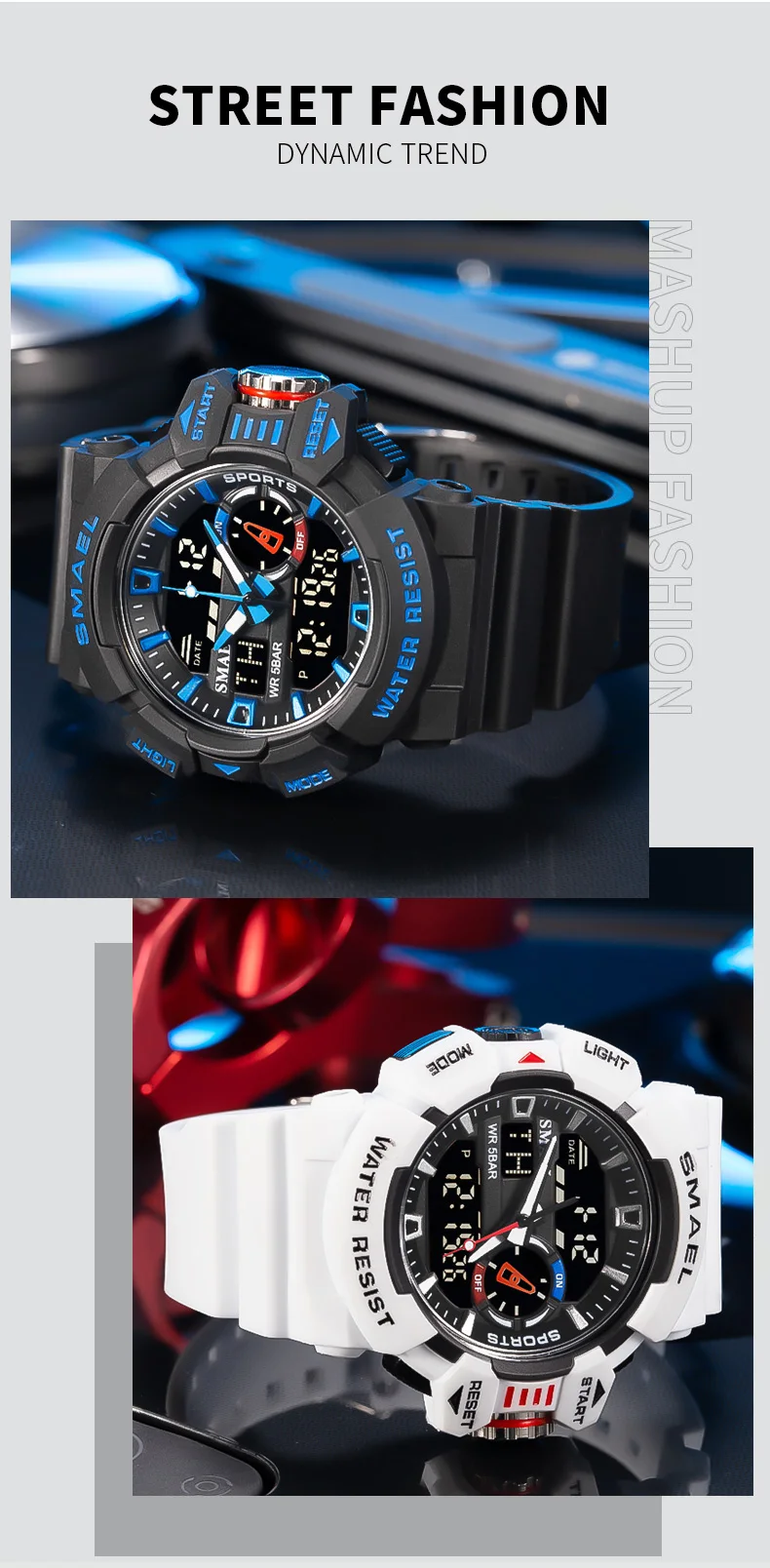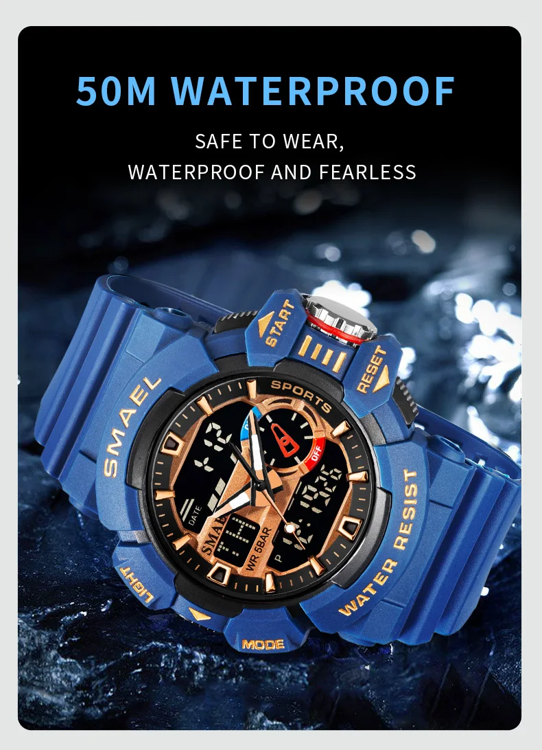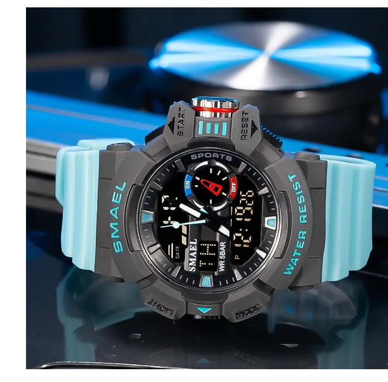 1. Бренд: SMAEL2. Двойные часы отображаются вместе с включением задней LED-подсветки3. Водонепроницаемость 50 м4. Тип: мужские наручные часы для занятий спортом5. Механизм: оригинальная японская цифровая индикация6. 8 цветов на выбор8. Ширина ремешка: (приблизительно) 2,3 см9. Диаметр циферблата: (приблизительно) 4,9 см10. Материал ремешка: прочный ПУ11. Материал корпуса: прочная резина + высокопрочное закаленное стекло12. Застежка: пряжка13. Показывают точное время14. Прекрасный подарок для кого-то особенногоПримечание: Мы рекомендуем вам не носить его во время плавания. Но если вы покупаетесь или ныряете, пожалуйста, не нажимайте кнопки под водой!Комплектующие в комплекте:-1 х Оригинальные часы SMAEL-1 х Инструкция по эксплуатацииЗаказывала толстовку для сына. Если честно качество прям удивило, думала придет хуже. Товаром довольна, толстовка теплая стильная, сыну понравилась. С... Читать отзыв полностью...