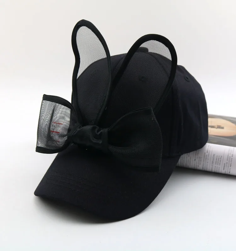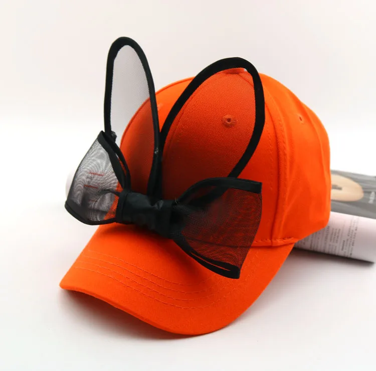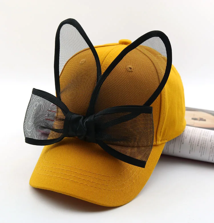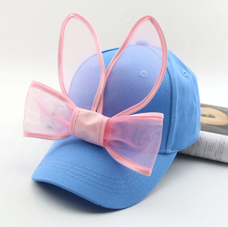 Детская бейсбольная кепка, Детская летняя шапка с заячьими ушками и большим бантом, детские солнцезащитные шапки для девочек, бейсболки в стиле хип-хоп