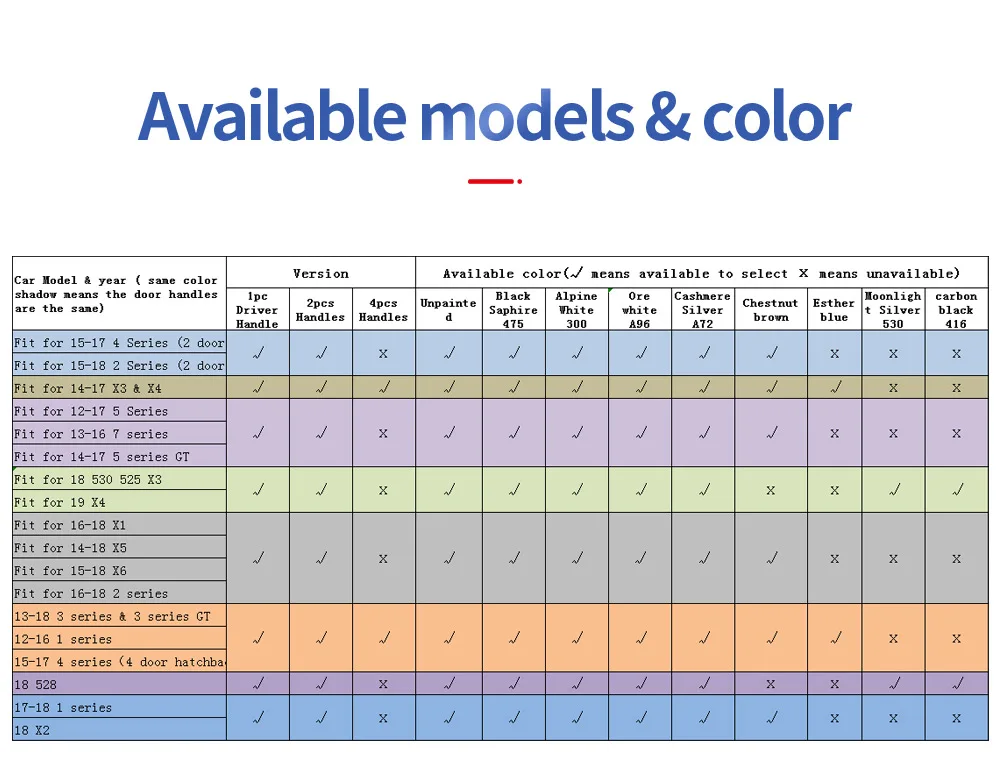 У нас есть еще некоторые дверные ручки, подходящие для других автомобилей BMW, см. Таблицу ниже для списка.