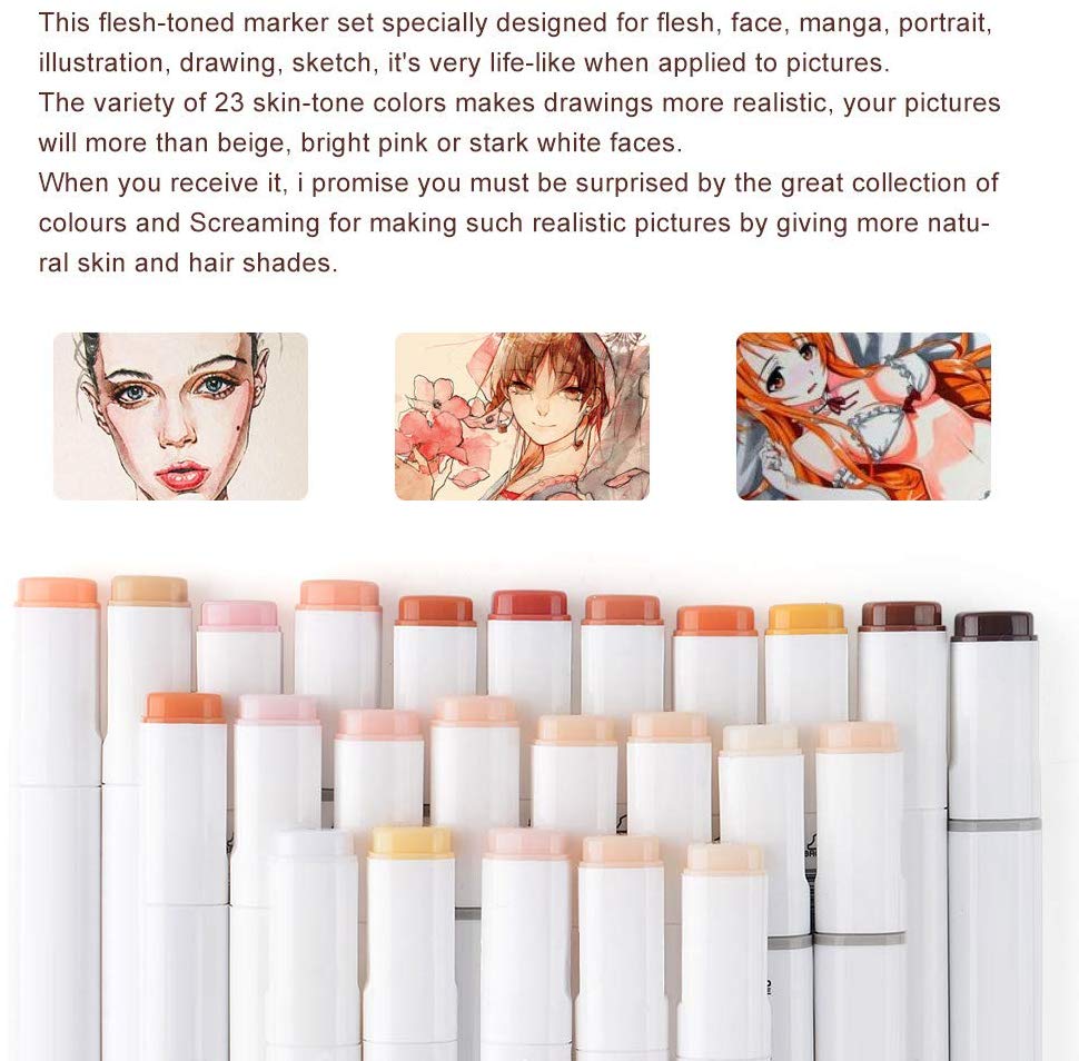 5. Этот маркер телесного цвета специально разработан для плоти, лица, манги, портрета, иллюстрации, рисования, эскиза, он очень похож на жизнь при нанесении на фотографии. Разнообразие 23 оттенков кожи делает рисунки более реалистичными, ваши фотографии будут более чем бежевые, ярко-розовые или ярко-белые лица. Когда вы получите его, я обещаю, что вы должны быть удивлены большой коллекцией цветов и кричащих за создание таких реалистичных фотографий, давая более естественные оттенки кожи и волос.