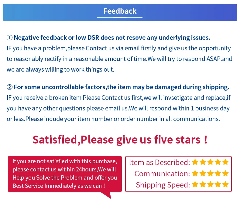Если у Вас возникли какие-либо проблемы, пожалуйста, свяжитесь с нами для технической поддержки, замены или возврата денег, мы ответим Вам в течение 24 часов.