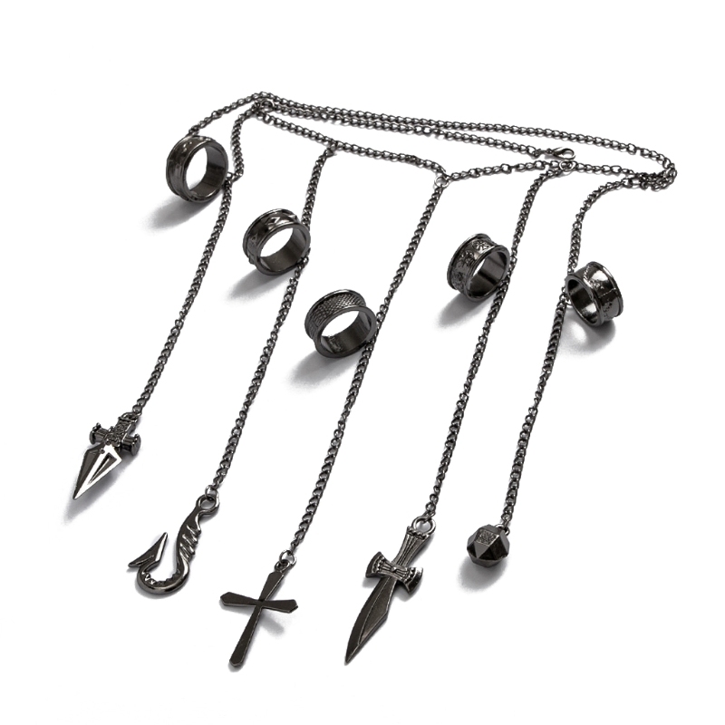 Взрослые дети Kurapika цепи браслет Охотник косплей крутые пять пальцев кольца Rapers полный-пять пальцев кольца модные ювелирные изделия