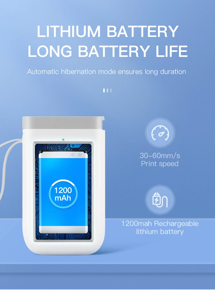 1. Беспроводной дизайн, поддерживает печать на большие расстояния.
