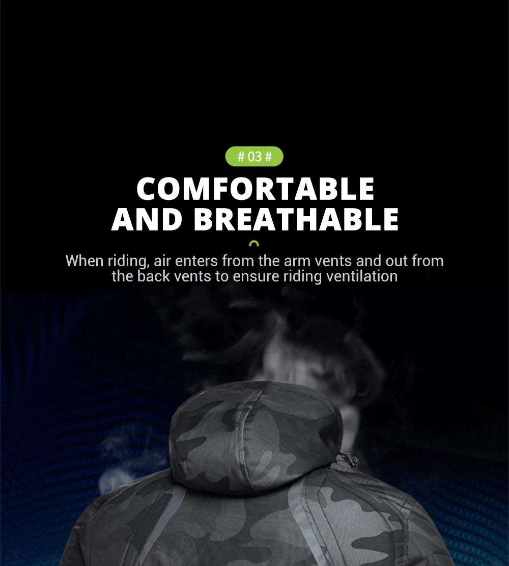 Внутренняя часть выполнена из полиэфирной пряжи 201T с показателем водонепроницаемости 5000 +, что позволяет легко справиться с непогодой во время езды и эффективно сохранять тело сухим и повышать комфорт при езде