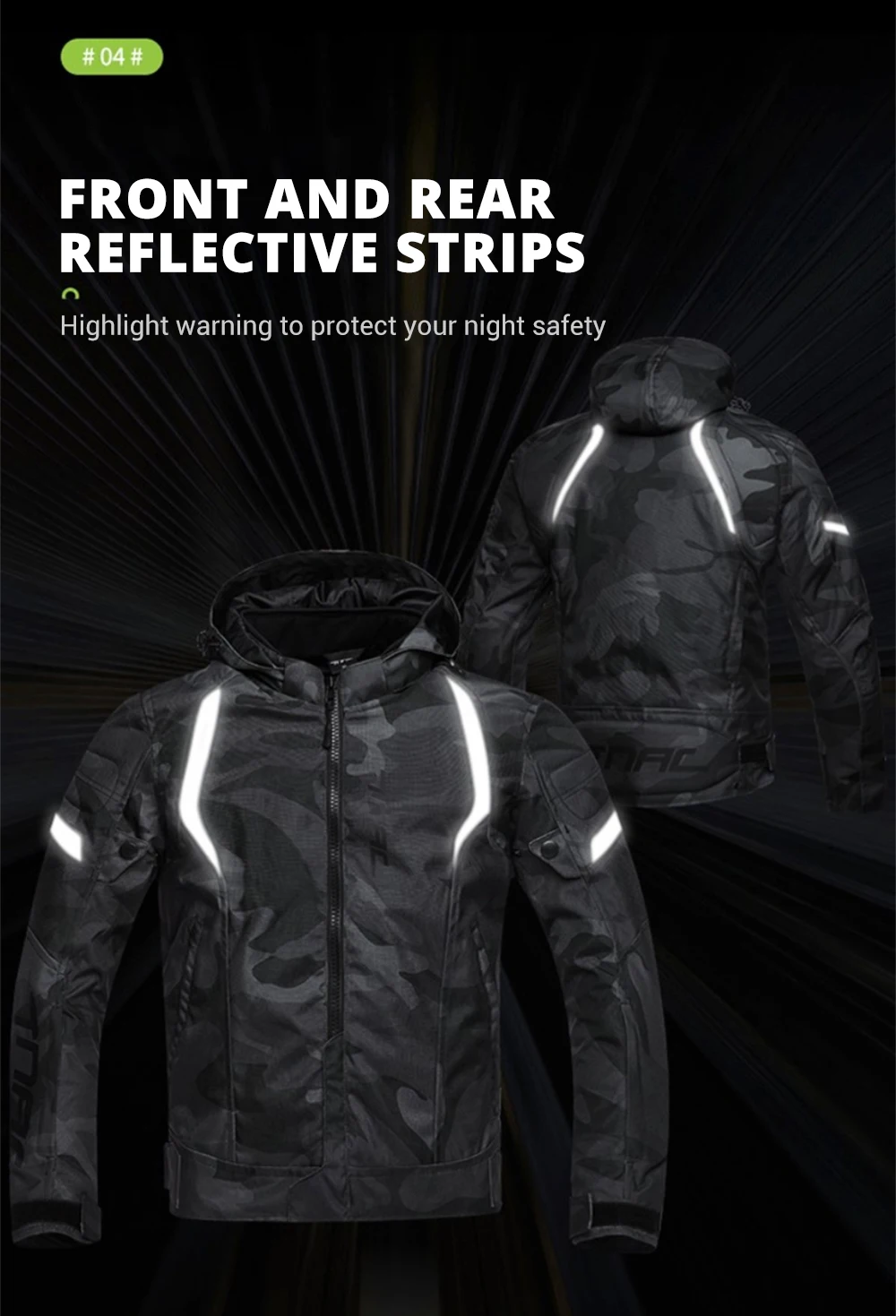 Отстегивающаяся шапка, куртка с вентиляционными отверстиями снаружи, которые можно открыть при катании, Светоотражающие Полоски спереди и сзади куртки, что может повысить узнаваемость в ночное время