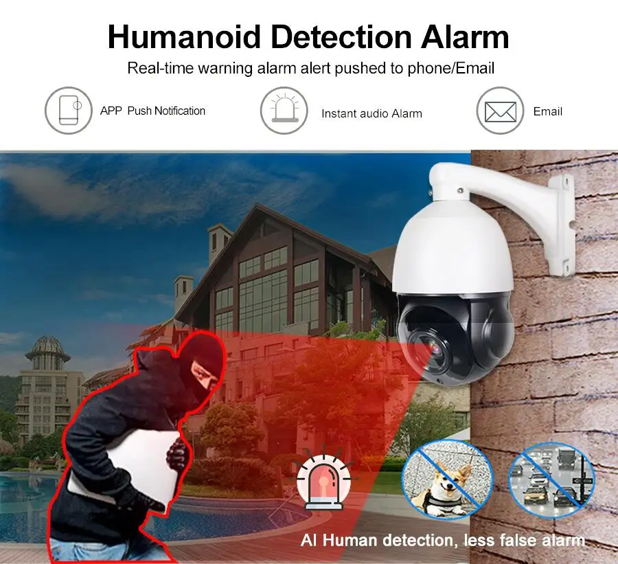 При обнаружении опасности эта камера видеонаблюдения будет вызывать оповещения, немедленно отправляя оповещения по электронной почте и отправляя уведомления на ваше устройство. Вы можете создать определенные зоны обнаружения движения для контроля определенных зон по вашему желанию. Вы можете настроить чувствительность обнаружения движения, чтобы уменьшить Ложные оповещения.