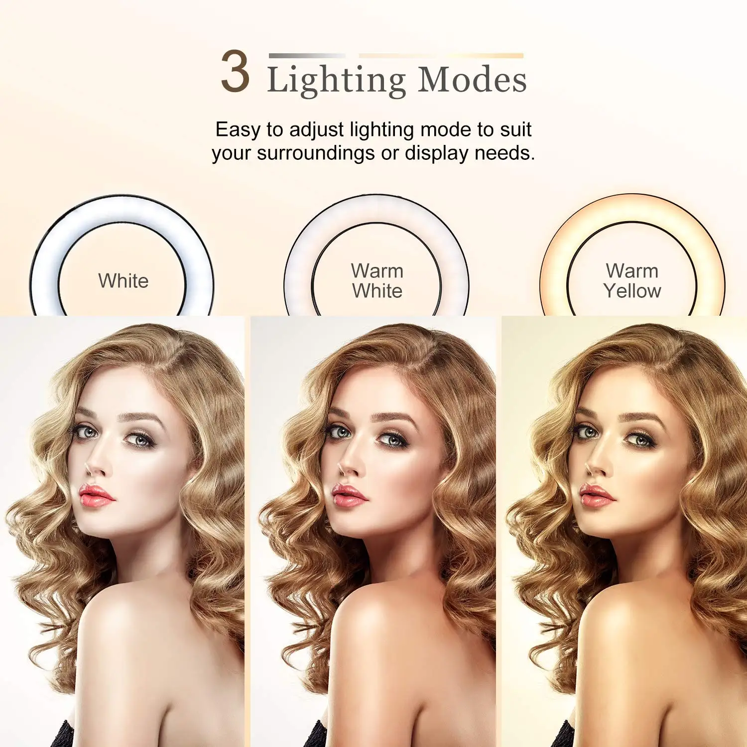 1. Три светильник режимов (белый, теплый белый, теплый желтый)