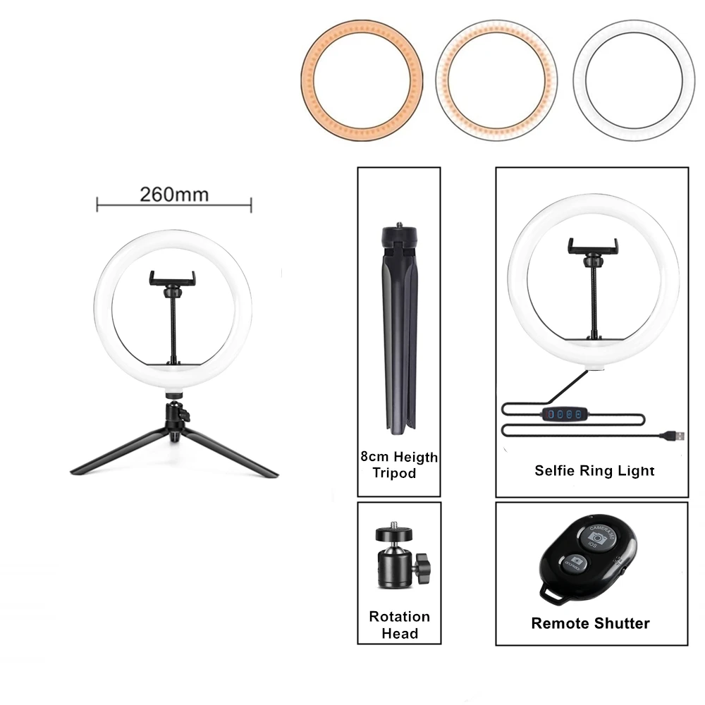 26 см кольцевая лампа Штатив для телефона Светодиодная лампа кольцевой светильник для фотографии кольцевой светильник светодиодный штатив с подставкой для фотостудии Youtube