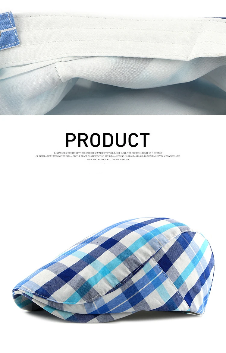 Новинка; Сезон весна-лето; Берет 100% реальные фотографии съемки Тип: берет Пол: Для мужчин и женщин Состав: хлопок, полиэстер Окружность шляпы: 55-59 см регулируется Узор: решетка Цвет: 3 цвета Сезон: весна, лето Добро пожаловать оптовые заказы и Прямая поставка