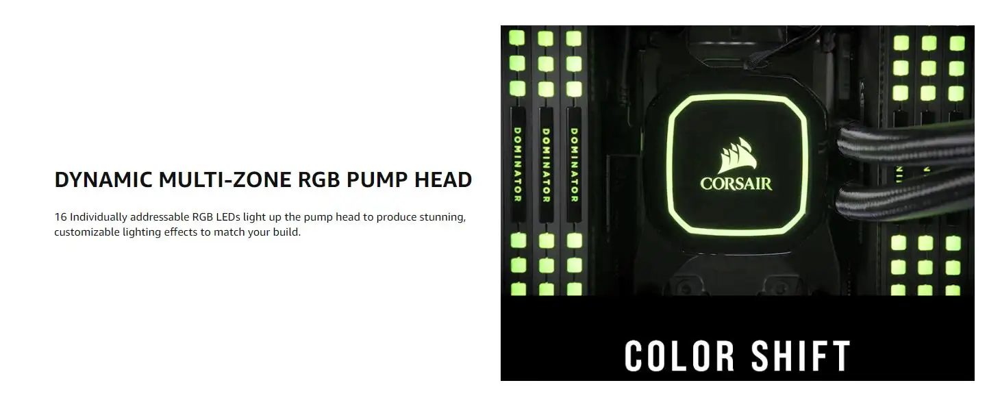 1. Два 120 миллиметра серии corsair ML магнитной левитации PWM вентиляторы обеспечивают улучшенный поток воздуха для экстремальной производительности охлаждения процессора 2,16 индивидуально адресуемый RGB светодиодный светильник вверх по насосной головке, чтобы произвести потрясающий настраиваемый светильник с эффектами, чтобы соответствовать вашей конструкции 3. Испытать невероятную производительность охлаждения с каждым вентилятором работает от 400 до 2 400 об/мин во время работы 4. Профили охлаждения с нулевым об/мин в программном обеспечении corsair iCUE позволяют вентиляторам полностью останавливаться при низких температурах, устраняя шум вентилятора 5. Программное обеспечение Corsair iCUE позволяет управлять и синхронизировать освещение вашего кулера RGB со всеми совместимыми устройствами iCUE контролировать температуру процессора и охлаждающей жидкости и регулировать скорость вентилятора и насоса все из одного интуитивно понятного интерфейса