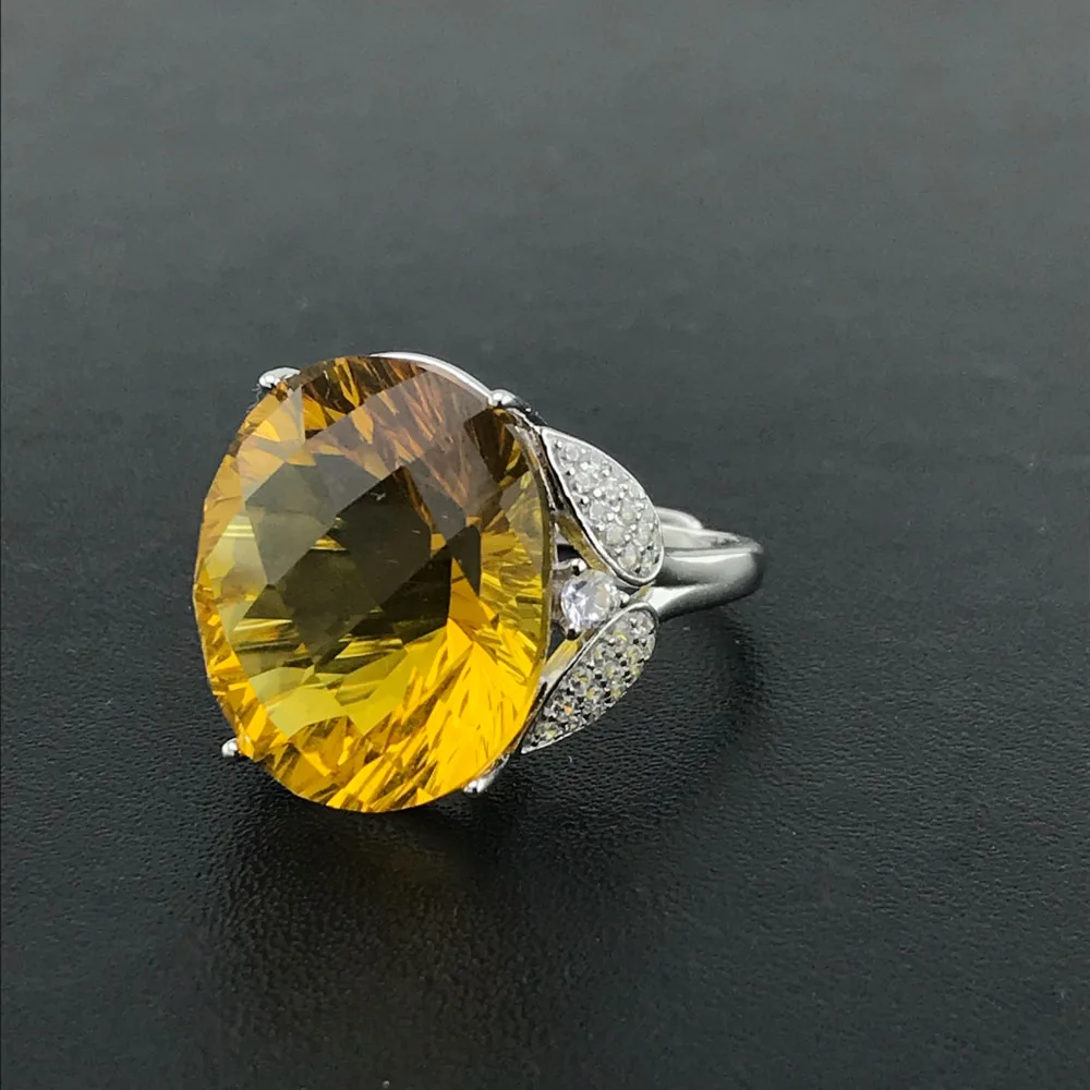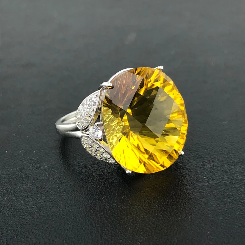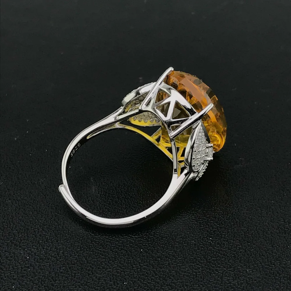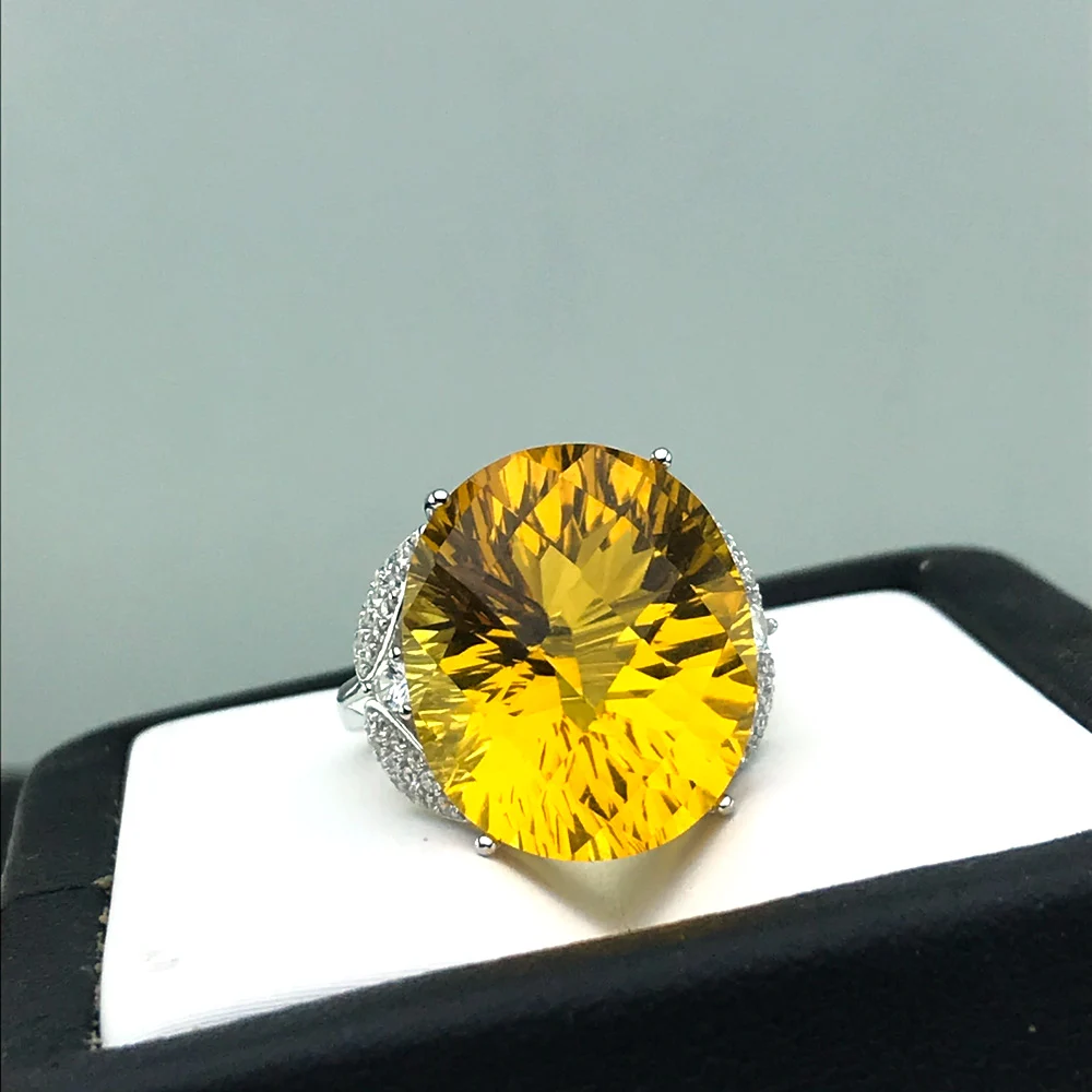 CSJ кольцо с большим камнем цитрин из стерлингового серебра 925 пробы, вогнутое овальной огранки 15*20 мм, кольца с драгоценными камнями, хорошее ювелирное изделие для женщин и девушек, подарочная коробка