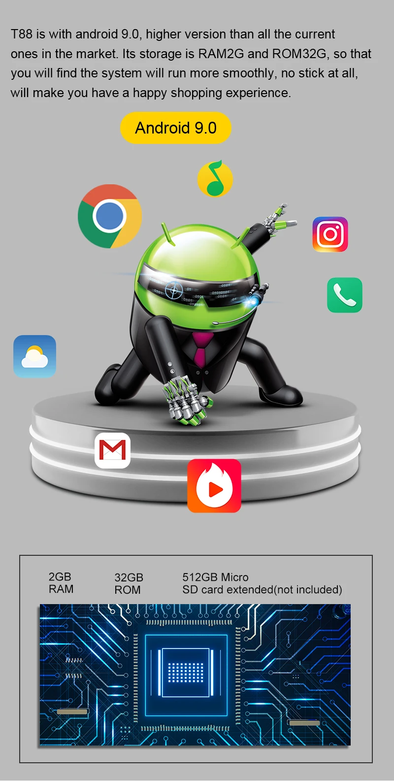 * Android 9,0 2 + 32G
