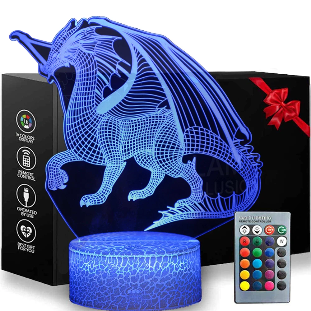 16 цветов динозавр дистанционный и сенсорный контроль 3D светодиодный Ночник светильник Дракон светодиодный настольная лампа для детей подарок на день рождения