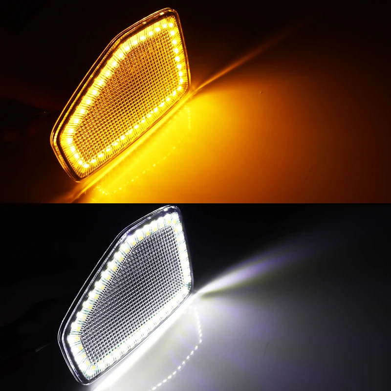 Ваш пакет включает в себя набор из 2 изделий с левой и с правой стороны курил черный (прозрачные линзы) передний габаритный фонарь объектива Крышка корпуса светодиодные лампы, которые сделаны для того, чтобы непосредственно заменить фабрики оснащены желтого цвета. Наши Двухцветные светодиодные боковые габаритные огни могут свет ксенон белый как стояночные/боковых габаритных огней во время вождения и мигания желтого цвета для поворотов.