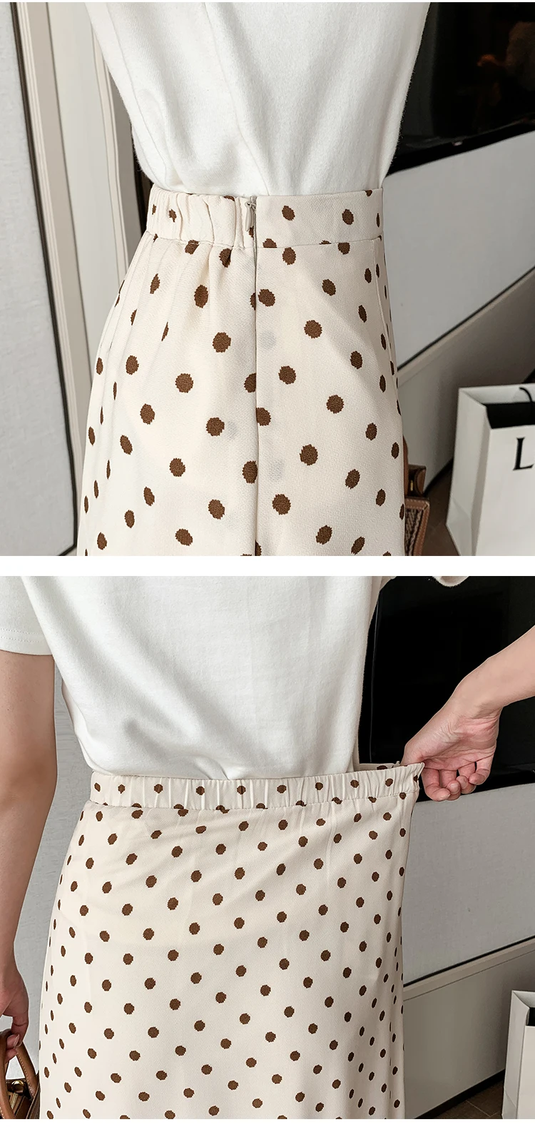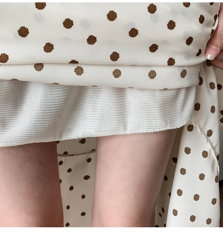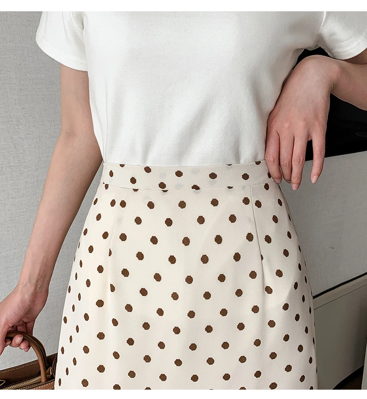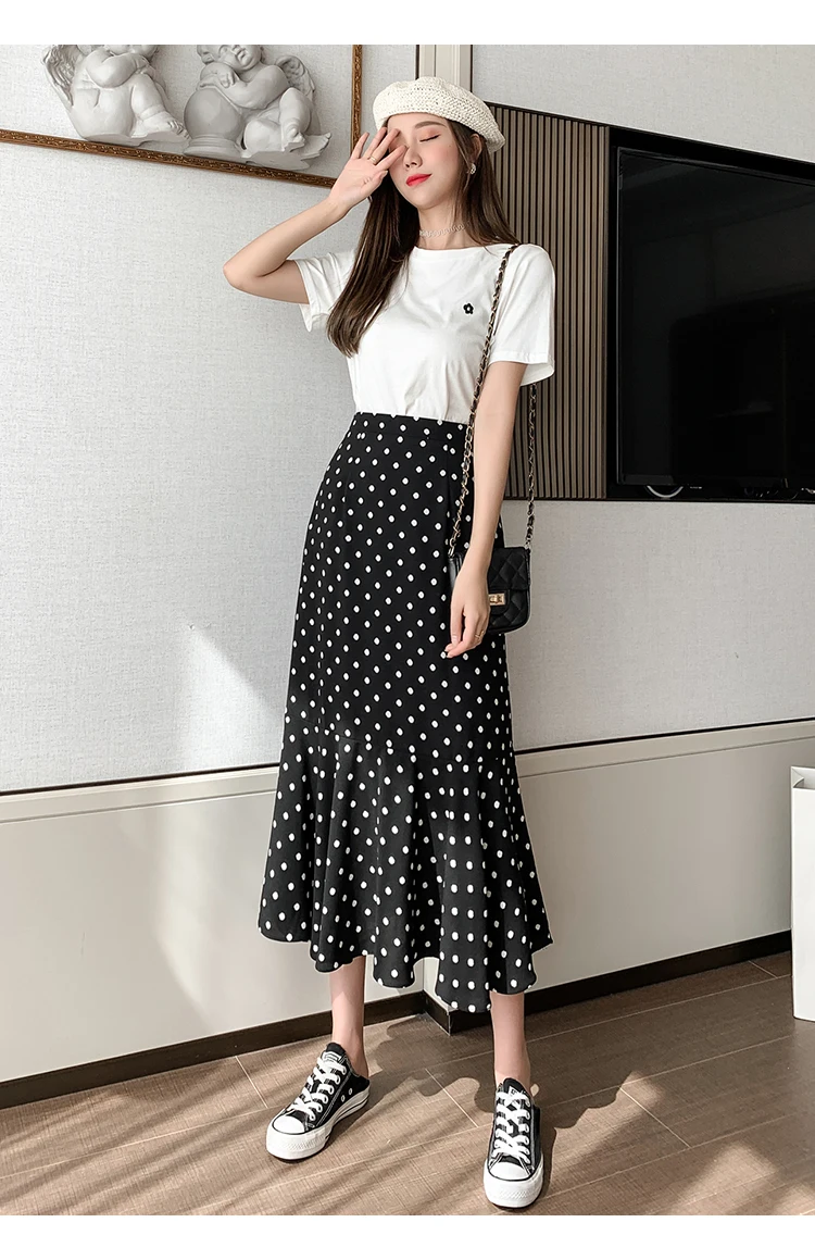 TingYiLi Women's Beige Black Polka Dot Print Mermaid Skirt Summer High Waist Elegant Chiffon Midi Skirt Korean Sexy Tight Skirt