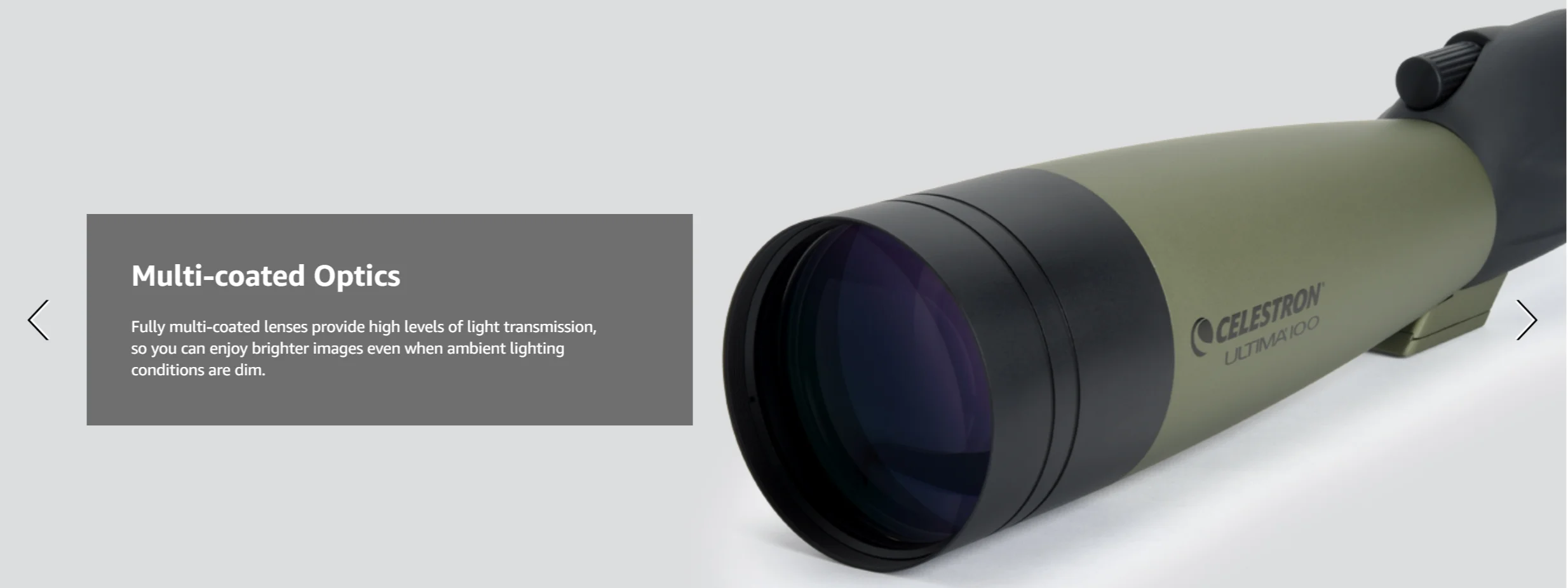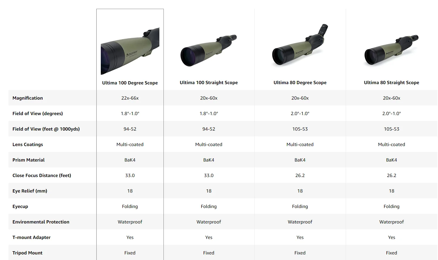 Самый большой диапазон диафрагмы в линейке Ultima, 100 мм Ultima предлагает более чем на 50% более ярких изображений, чем 80 мм, что позволяет обеспечить лучшую производительность в условиях низсветильник ности. 100 мм рефрактор отличается превосходной многослойной оптикой, упакованной в портативную и прочную конструкцию рефрактора и поставляется стандартно с 22-66x зум-окуляром. Эта серия была разработана для хорошей работы в различных ситуациях, что делает ее отличным универсальным оптическим инструментом. Вам понравится наблюдать за природой и дальними расстояниями. Зеленая резиновая оптическая трубка обеспечивает тонкое наблюдение в любой природной среде. Ultima spotters отличный спутник для любой природы или любителей активного отдыха.