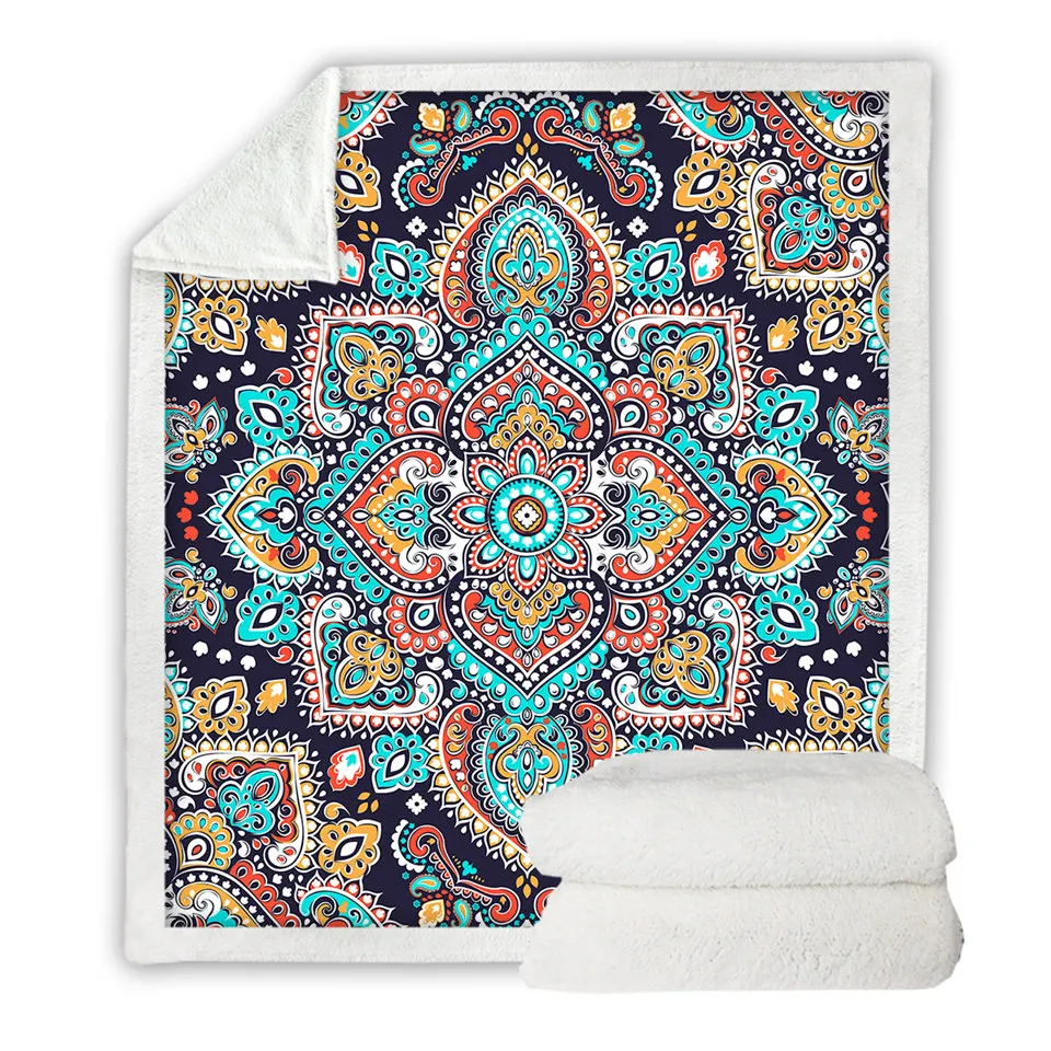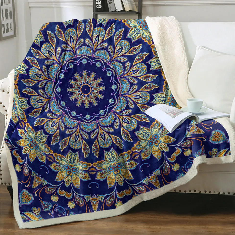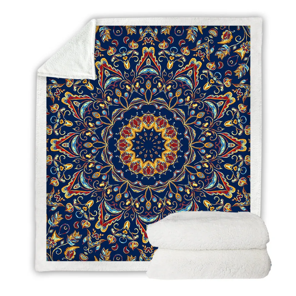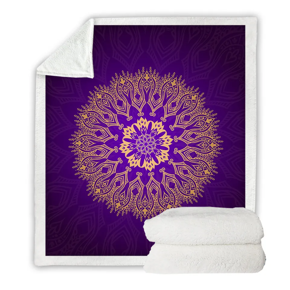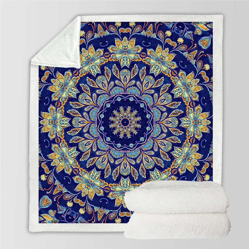 Item Name:BlanketPacking List:1*BlanketFabric:Soft crystal velvet front, Warm sherpa fleece backSize:29.5"x39.4" (75cmx100cm),51"x59" (130cmx150cm),59"x78.7" (150cmx200cm),90"x90" (228cmx228cm)Feature:Elegant design with mandala floral pattern and gemstones, make your room more luxurious.BeddingOutlet Reminder:1)In order to keep the color fresh, It is better to add salt to the water for your first washing.2) Due to the light and screen difference, the item's color may be slightly different from the pictures.3) Please allow 1-2cm differences due to manual measurement.