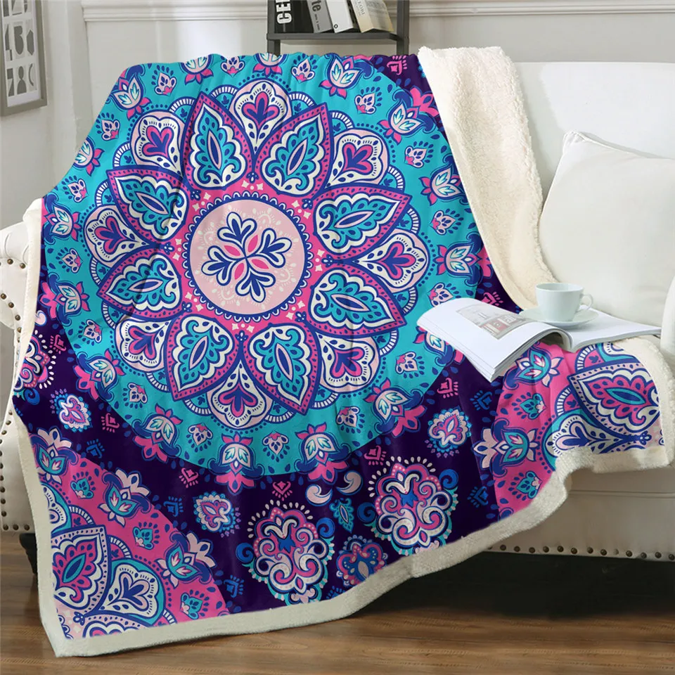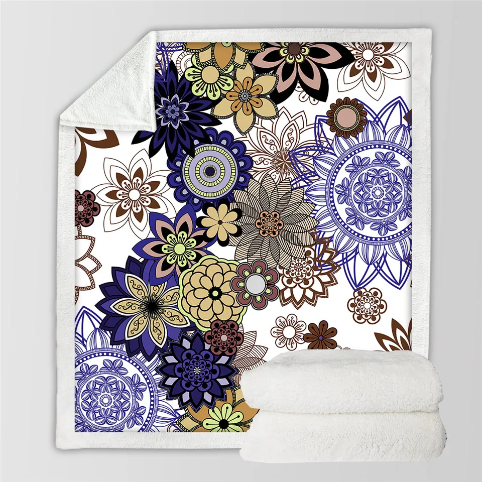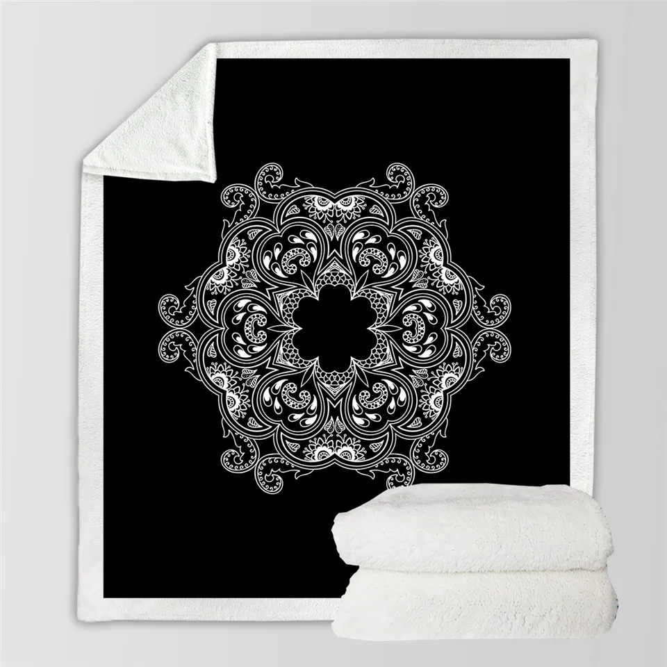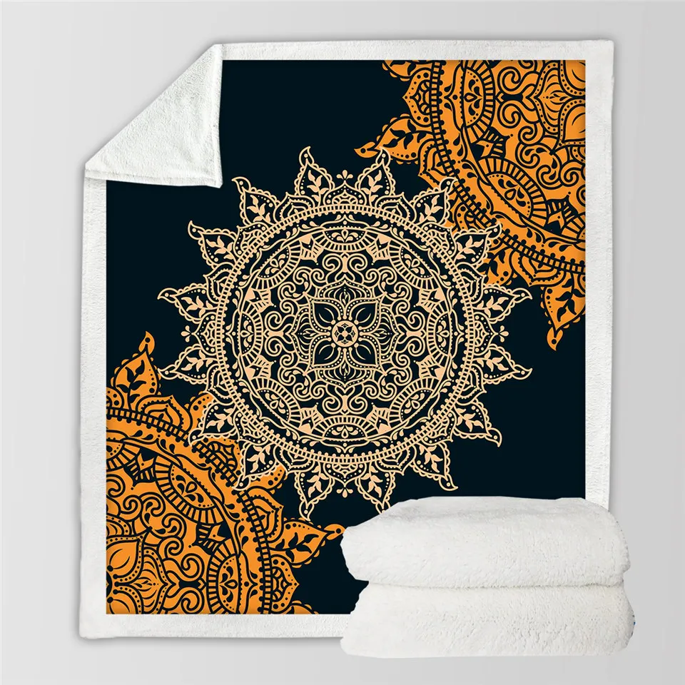 Item Name:BlanketPacking List:1*BlanketFabric:Soft crystal velvet front, Warm sherpa fleece backSize:29.5"x39.4" (75cmx100cm),51"x59" (130cmx150cm),59"x78.7" (150cmx200cm),90"x90" (228cmx228cm)Feature:Elegant design with mandala floral pattern and gemstones, make your room more luxurious.BeddingOutlet Reminder:1)In order to keep the color fresh, It is better to add salt to the water for your first washing.2) Due to the light and screen difference, the item's color may be slightly different from the pictures.3) Please allow 1-2cm differences due to manual measurement.