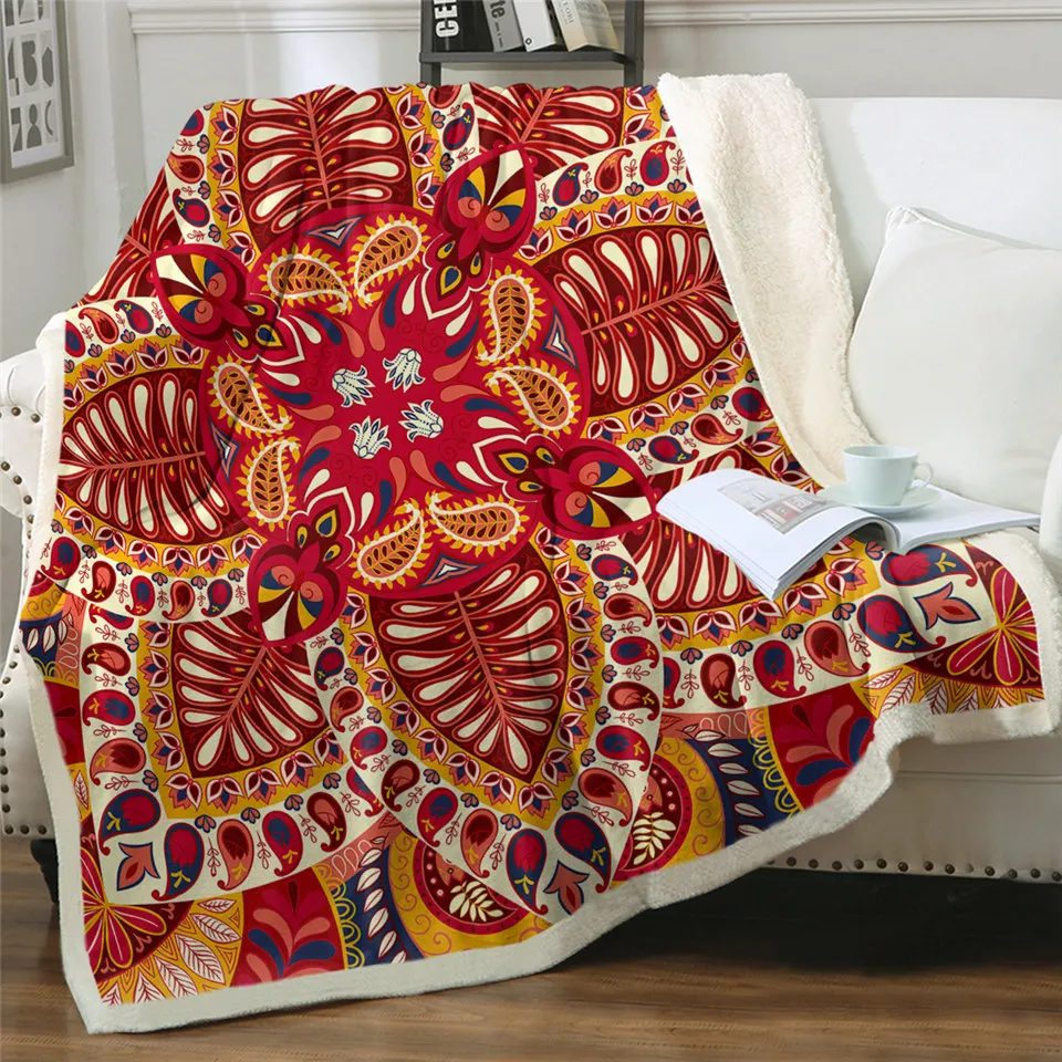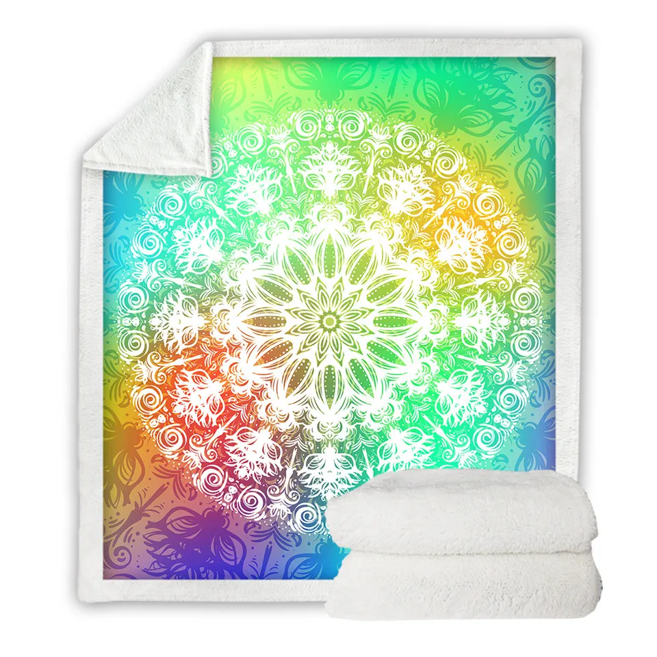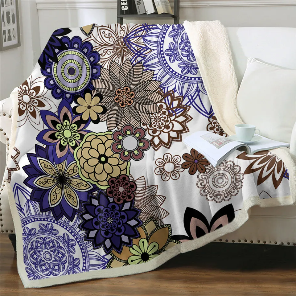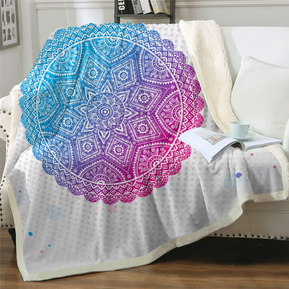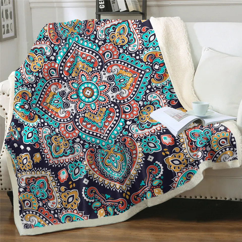 Item Name:BlanketPacking List:1*BlanketFabric:Soft crystal velvet front, Warm sherpa fleece backSize:29.5"x39.4" (75cmx100cm),51"x59" (130cmx150cm),59"x78.7" (150cmx200cm),90"x90" (228cmx228cm)Feature:Elegant design with mandala floral pattern and gemstones, make your room more luxurious.BeddingOutlet Reminder:1)In order to keep the color fresh, It is better to add salt to the water for your first washing.2) Due to the light and screen difference, the item's color may be slightly different from the pictures.3) Please allow 1-2cm differences due to manual measurement.