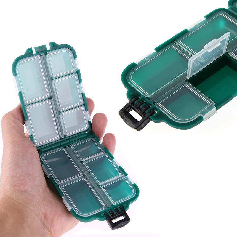 С 10 отдельными отсеками, отсеки имеют прозрачные крышки,