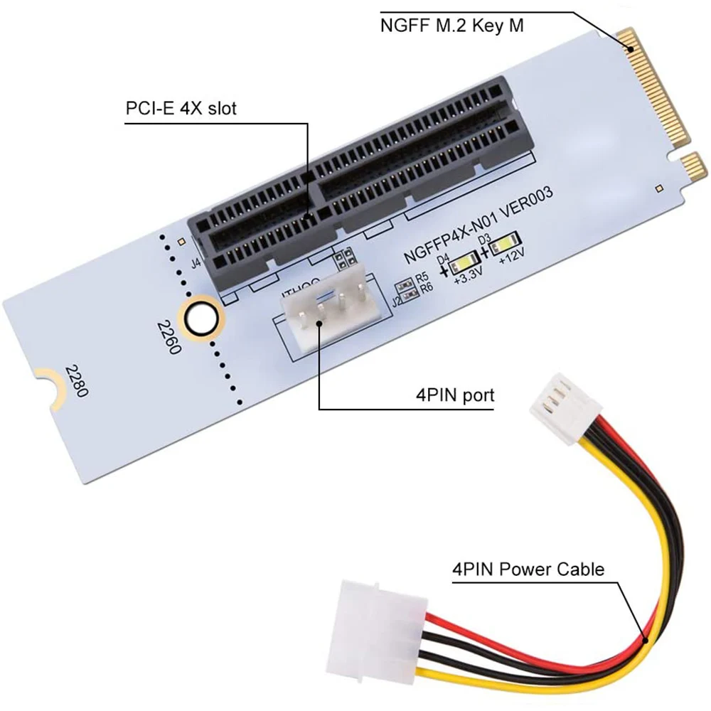 Этот адаптер позволяет пользователям использовать стандартную карту PCI-e 1x/4x в слоте для ключей M.2 NGFF M на рабочем столе или ноутбуке.