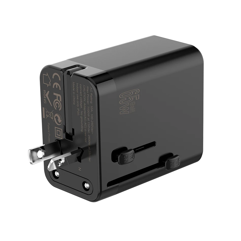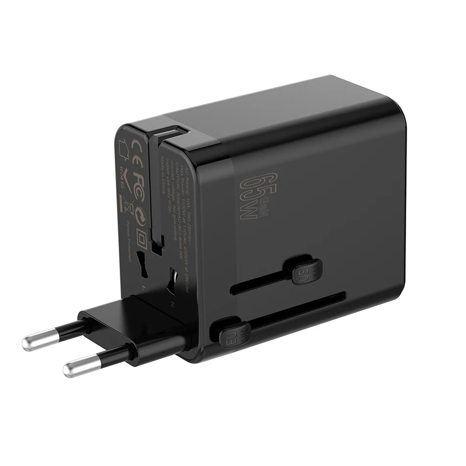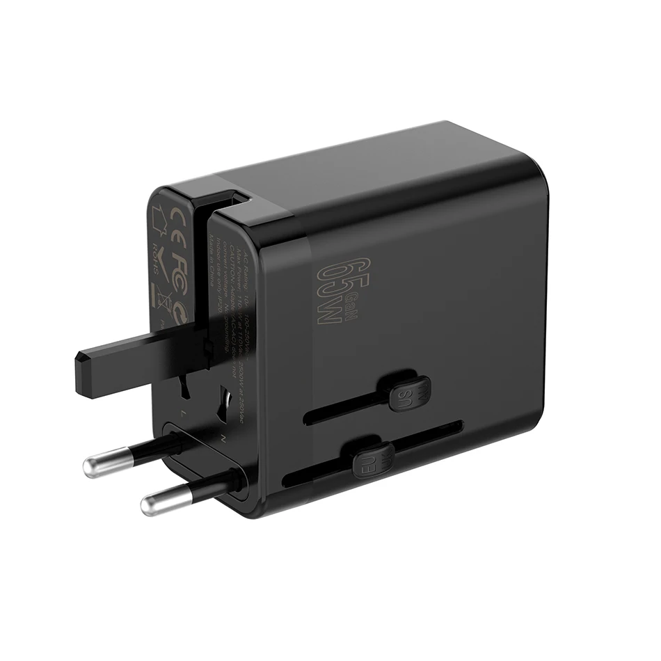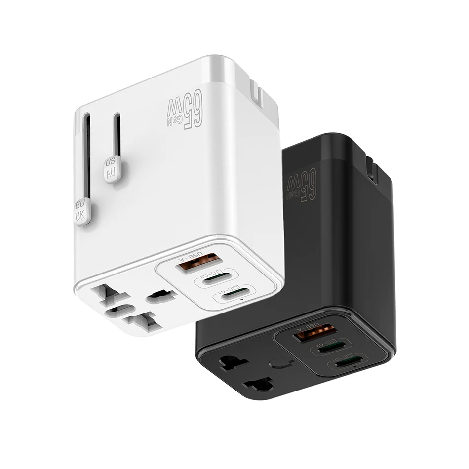 TQUQ 3 порта 65 Вт GaN супер быстрый USB C адаптер питания, глобальный универсальный US EU AU UK вилка для путешествий зарядное устройство головка с гнездом переменного тока